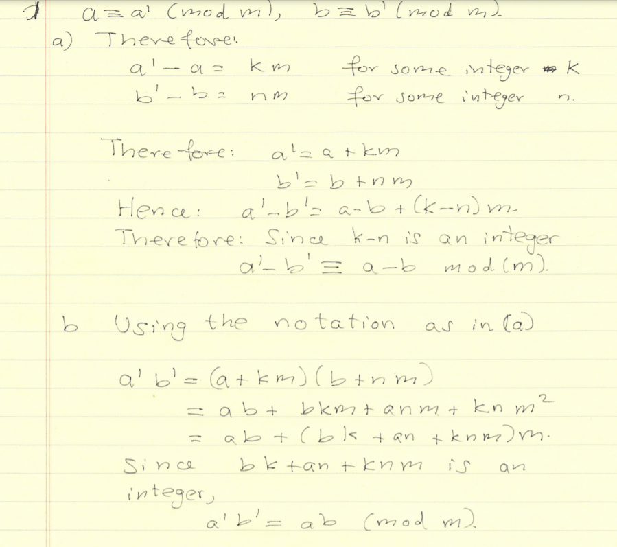 1. Let a, b, a', b' ∈ Z with a ≡ b (mod m) and a' ≡ b' (mod m...