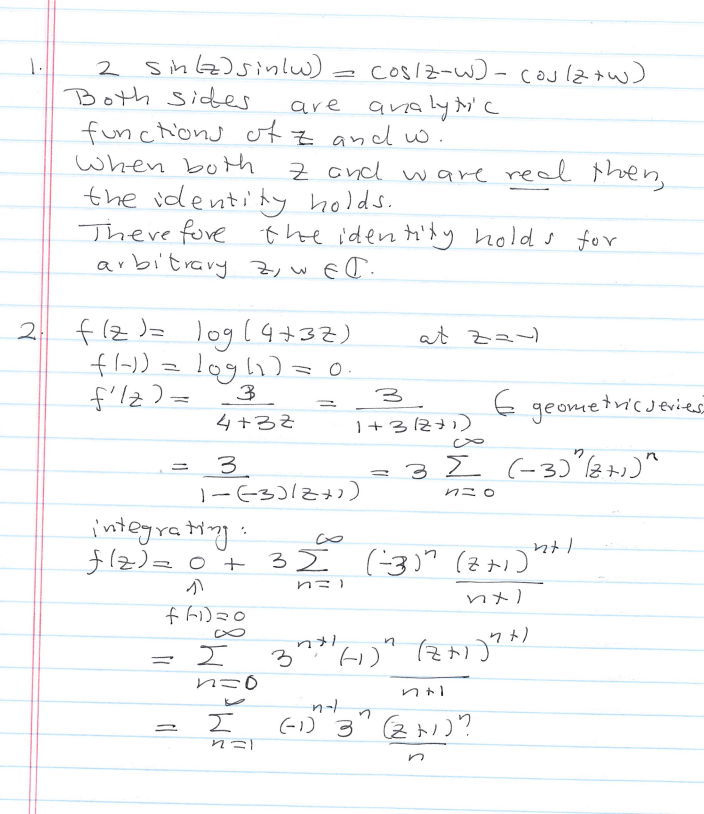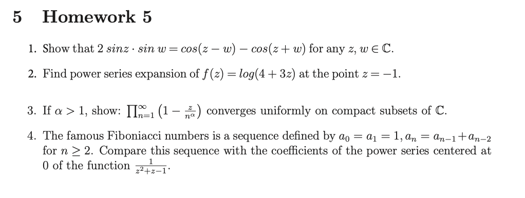 5 Homework 5 1. Show that 2 sinz · sin w = cos(z − w) − cos(z...