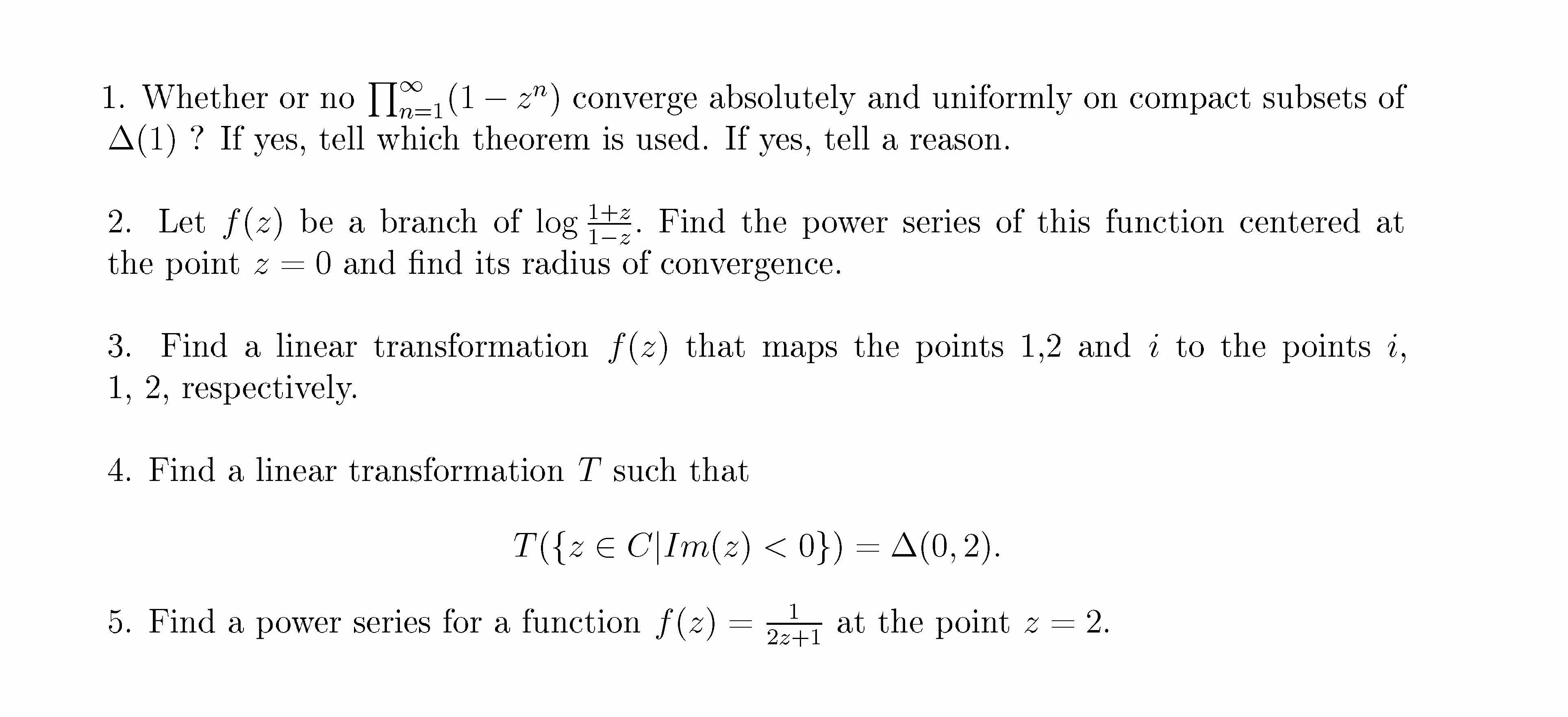 1. Whether or no Q∞ n=1(1 − z n ) converge absolutely and un...