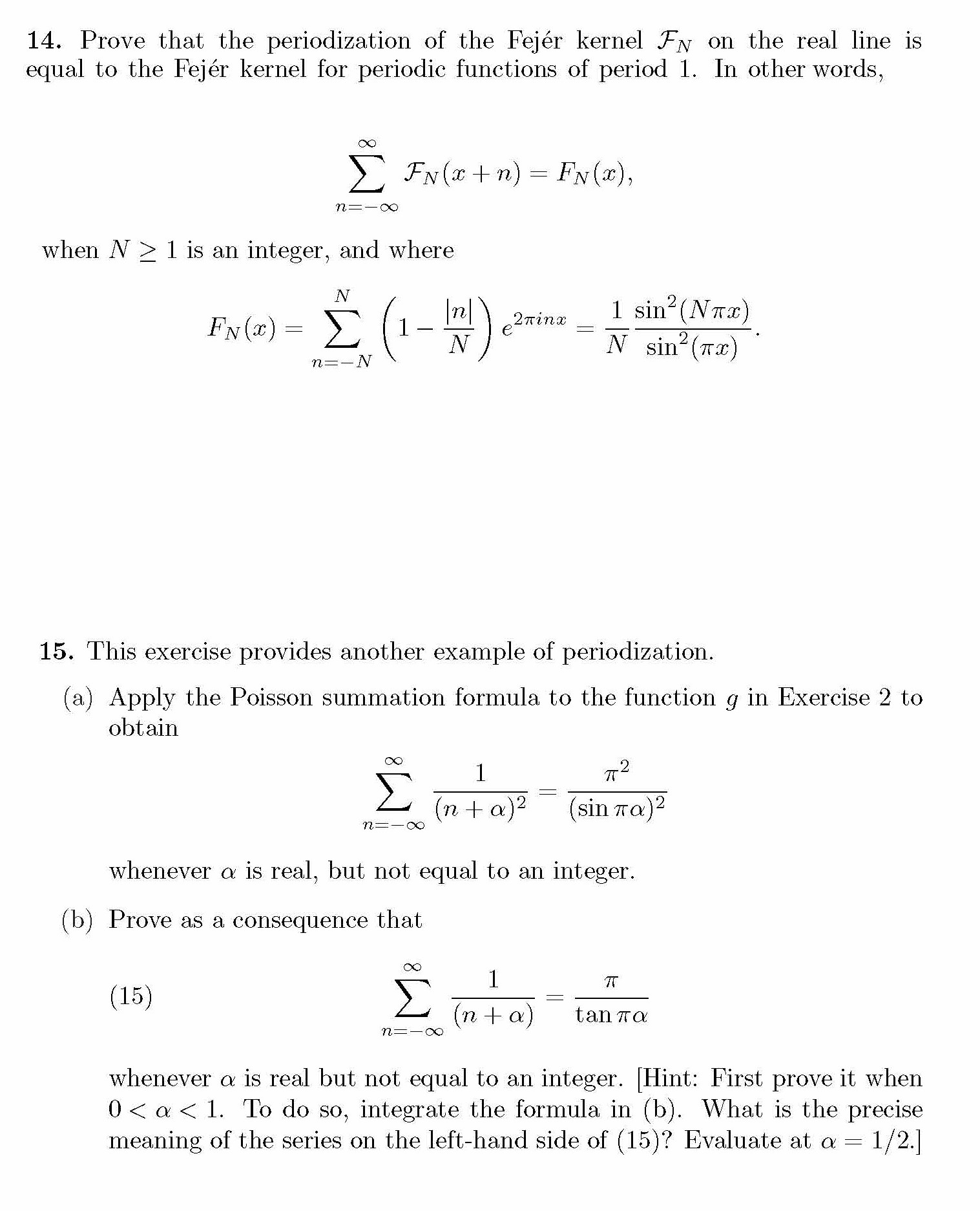 14. Prove that the periodization of the Fejer kernel FN on the real...