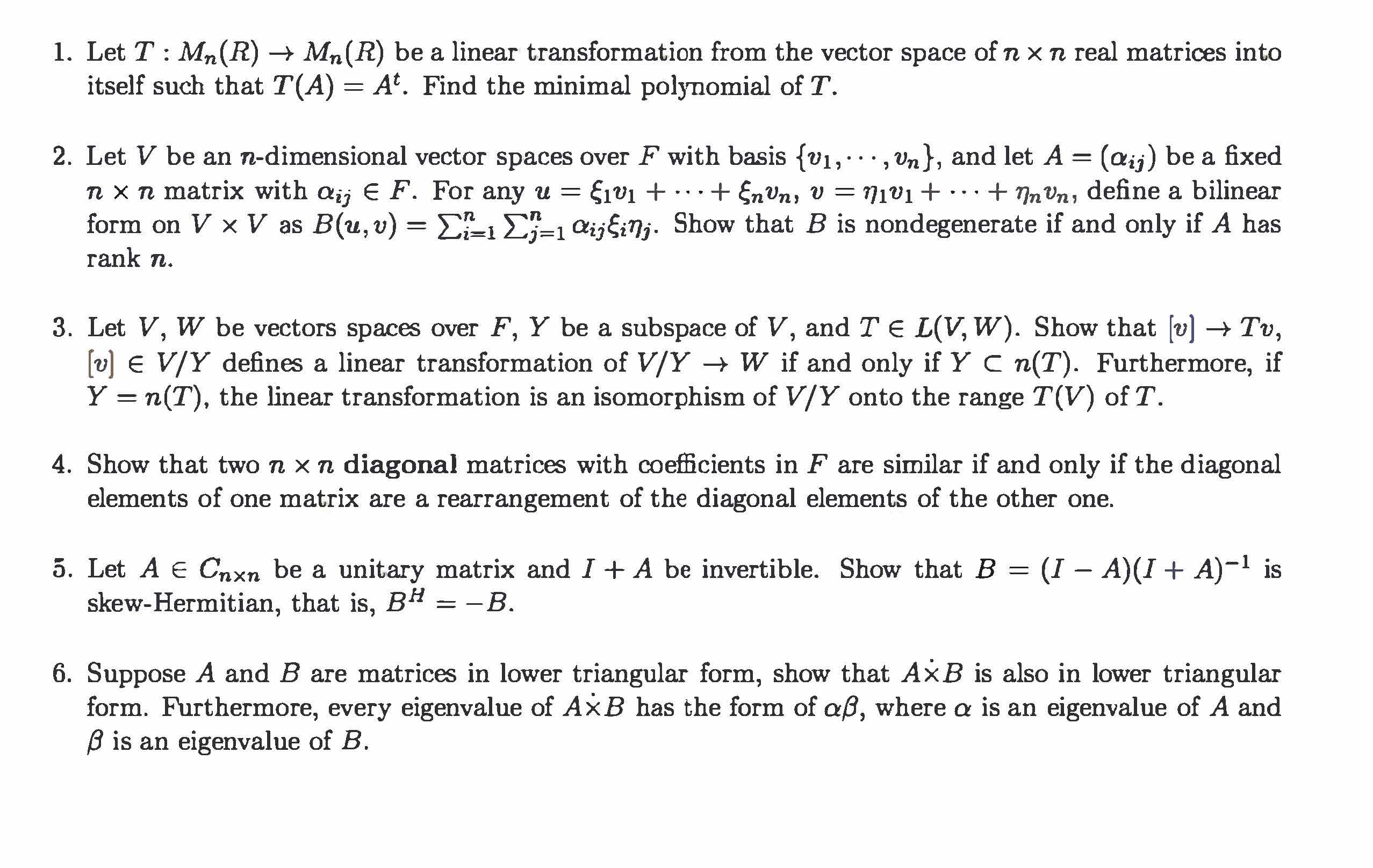 1. Let T: Mn(R) âž” Mn (R) be a linear transformation from the vect...