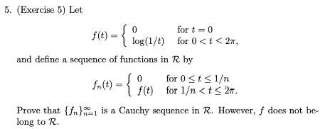 5. (Exercise 5) Let f(t) { for t = 0 = log(1/t) for 0 <...