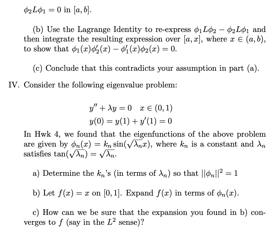 I. Find the Fourier sine series of f(x) = x on the interval (0, L)....