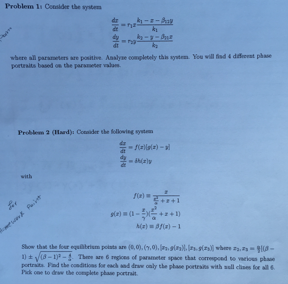 Problem 1: Consider the system dx = - x - ß123 dt dy = dt k2...