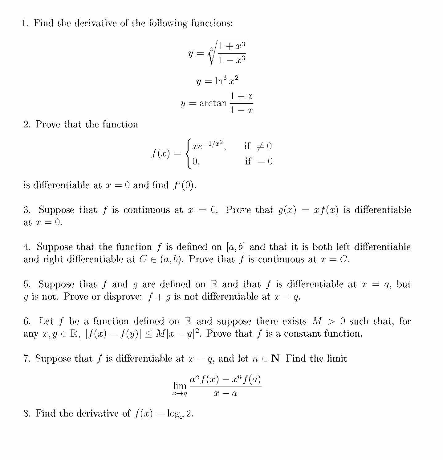 1. Find the derivative of the following functions: *=1/142 y = ...
