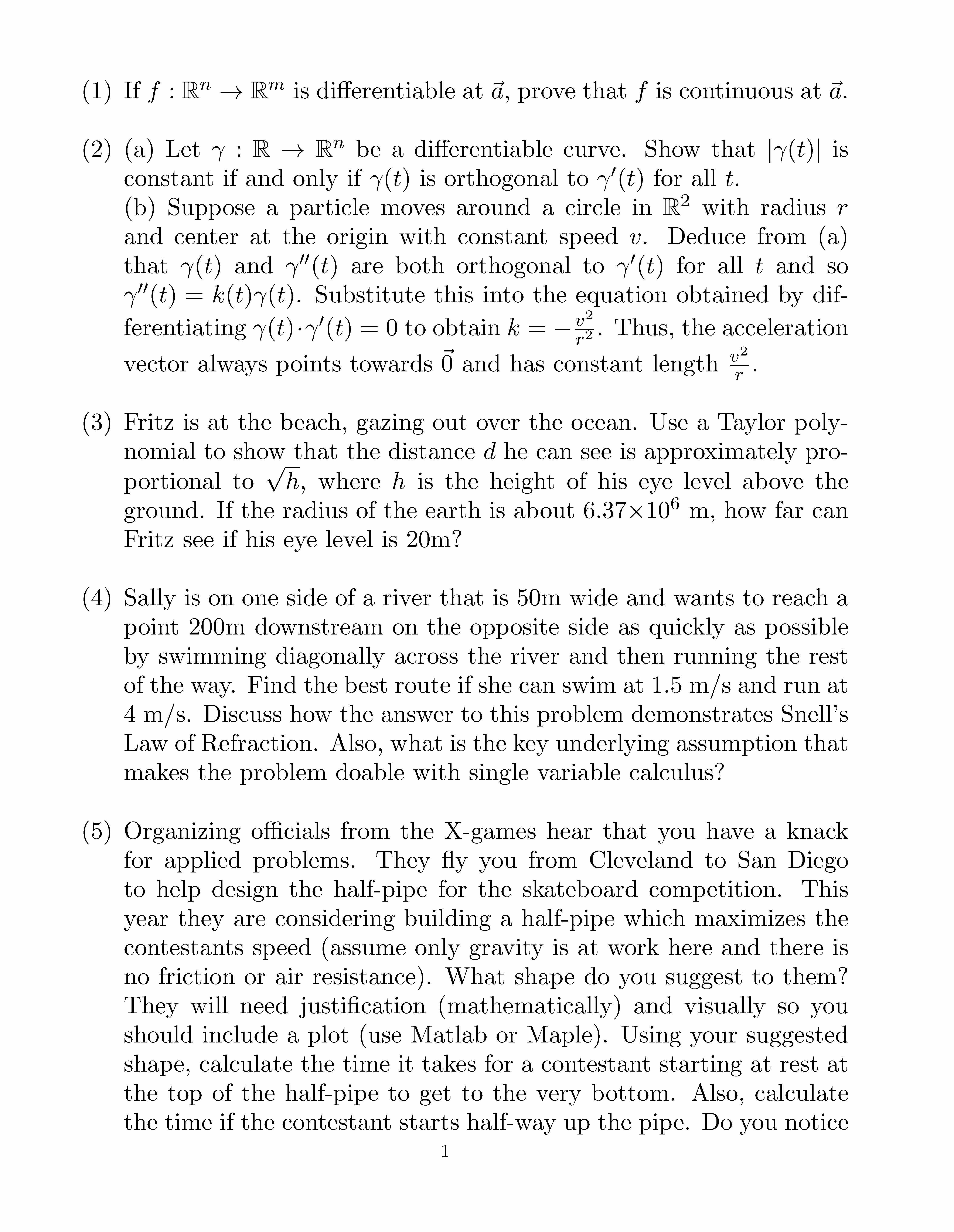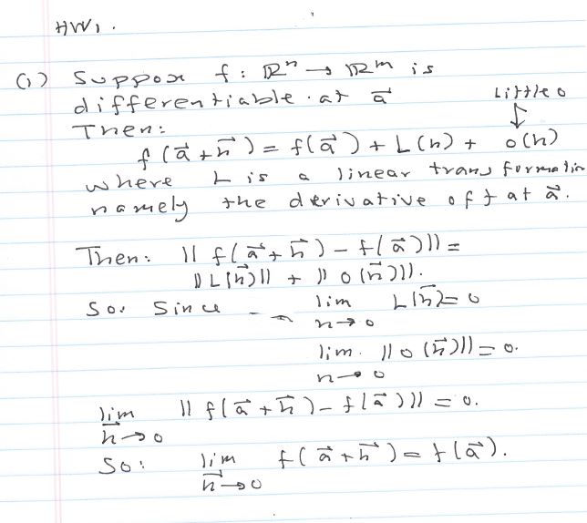 (1) If f : Rn ! Rm is dierentiable at ~a, prove that f is continuo...