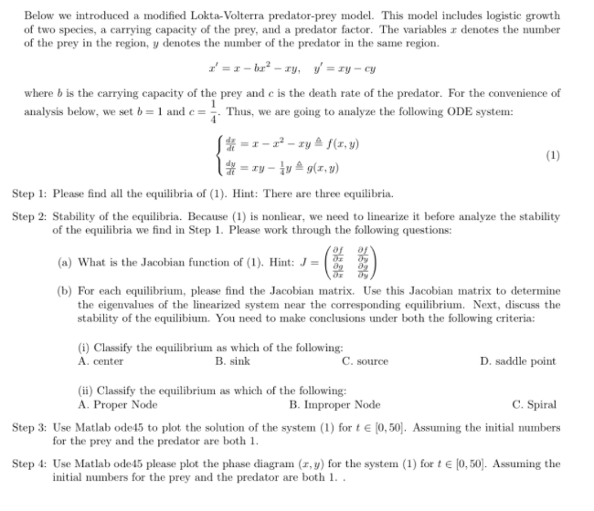 Below we introduced a modified Lokta-Volterra predator-prey model. ...