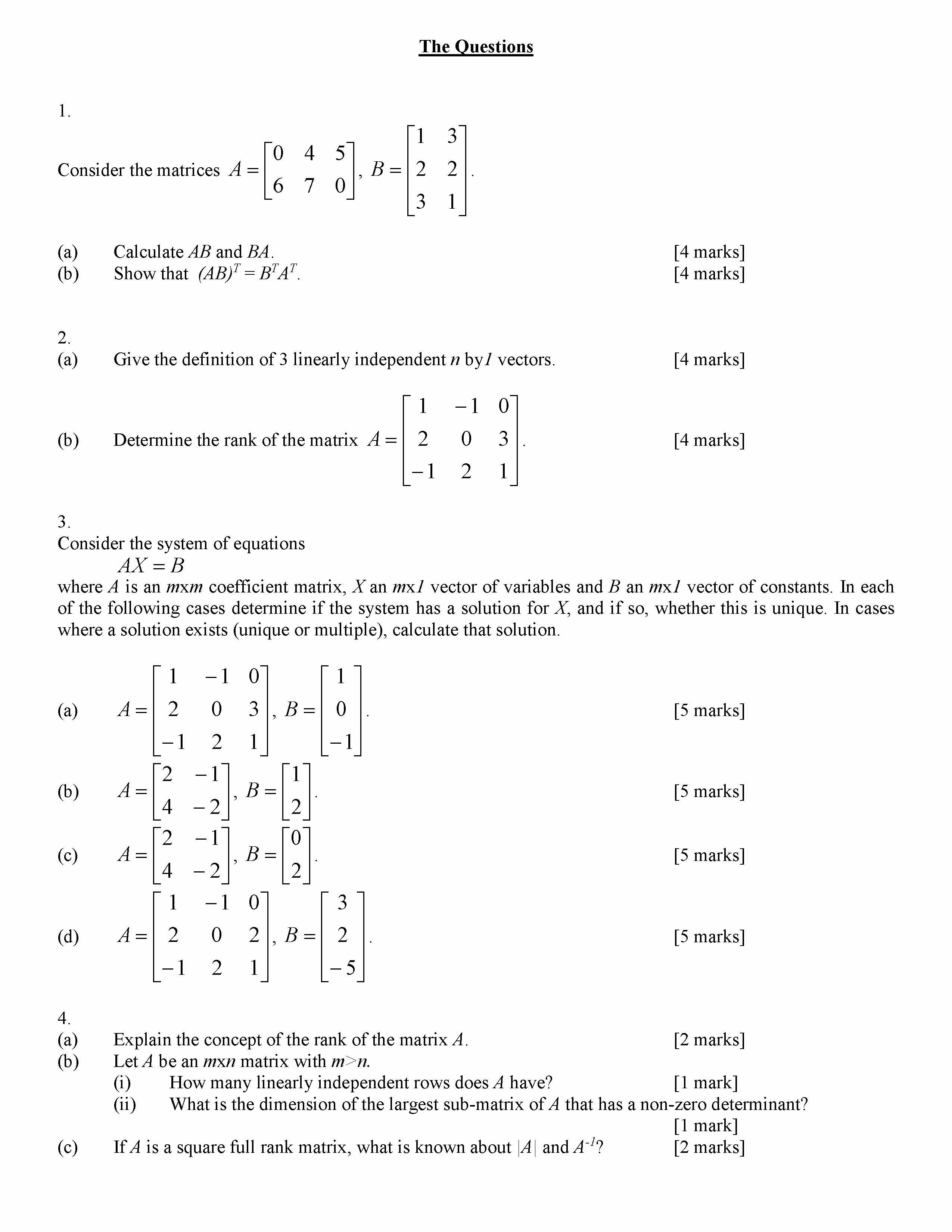 The Questions 1. 1 3 0 4 5 Consider the matrices A= B = 2 2 ,...