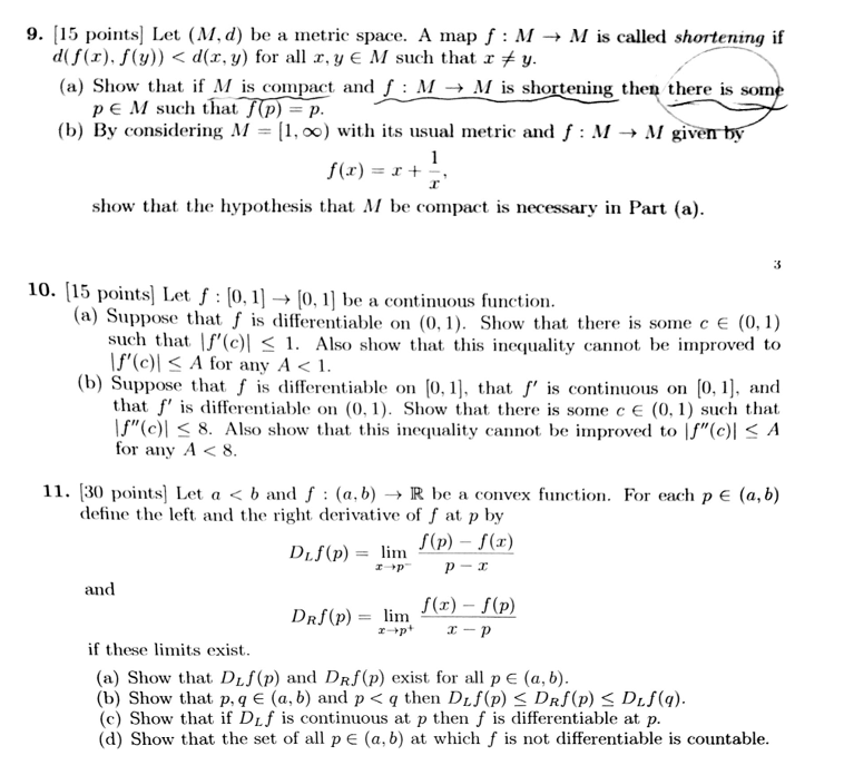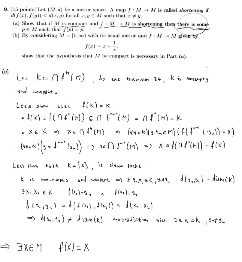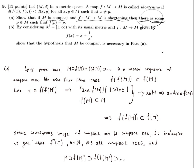 . [15 points] Let (M,d) be a metric space. A map f M M is called sh...