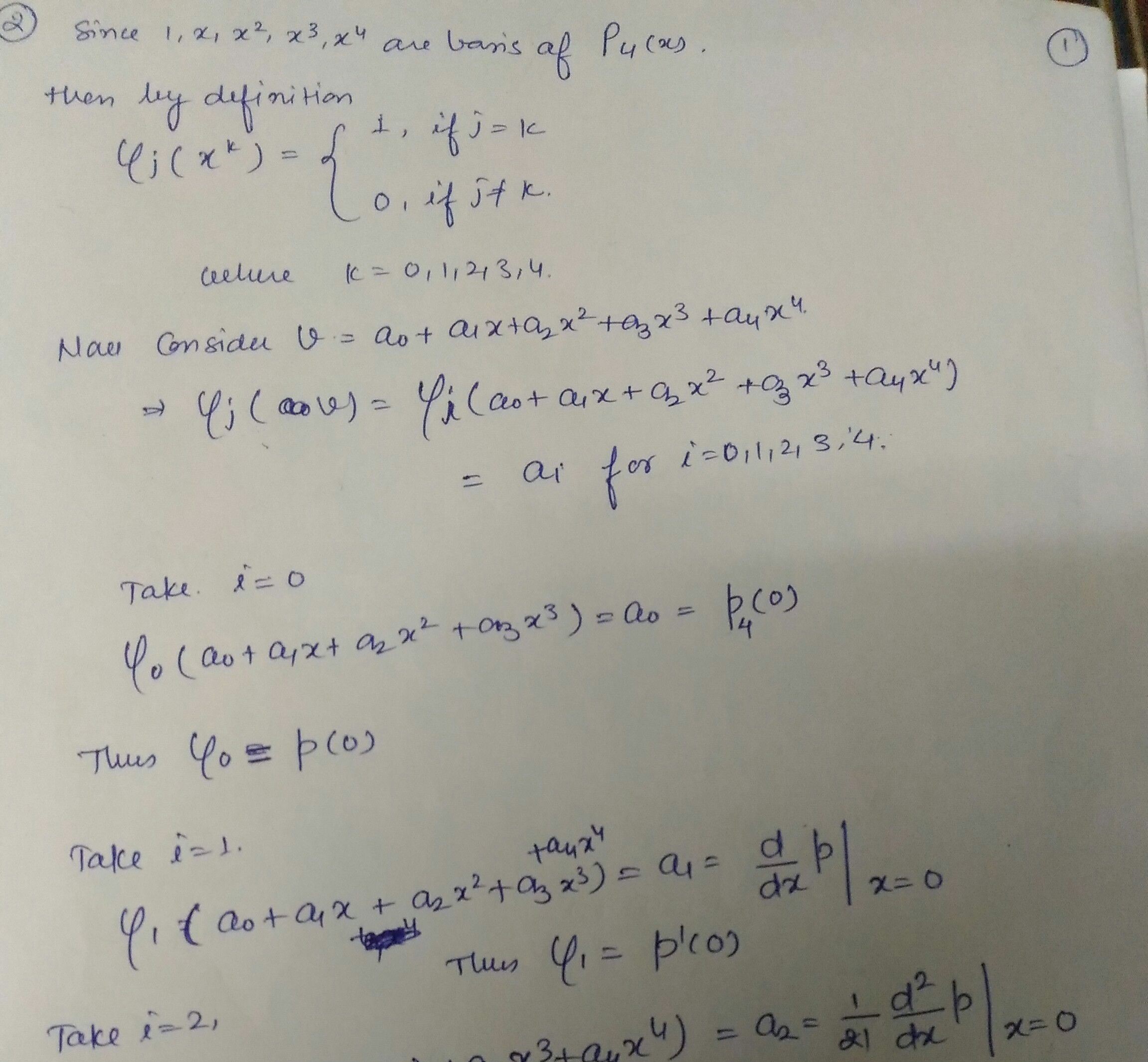 2. Find the dual basis of the basis 1,x,x2,x3, x of P4 (x). Hint: ...