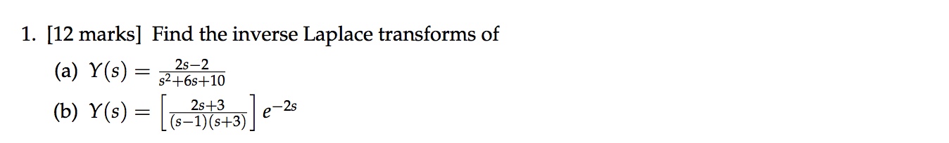 1. [12 marks] Find the inverse Laplace transforms of = 2s-2 2. [...