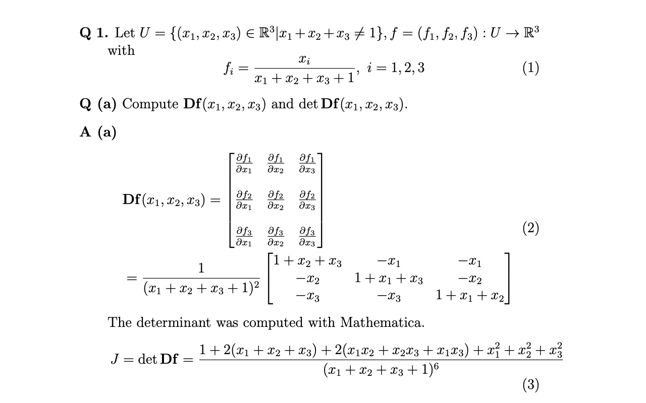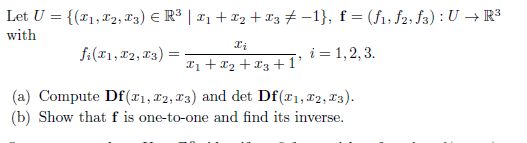 Let U = R3 with x = 1,2,3. (a) Compute and det Df (x1, (b) Sh...