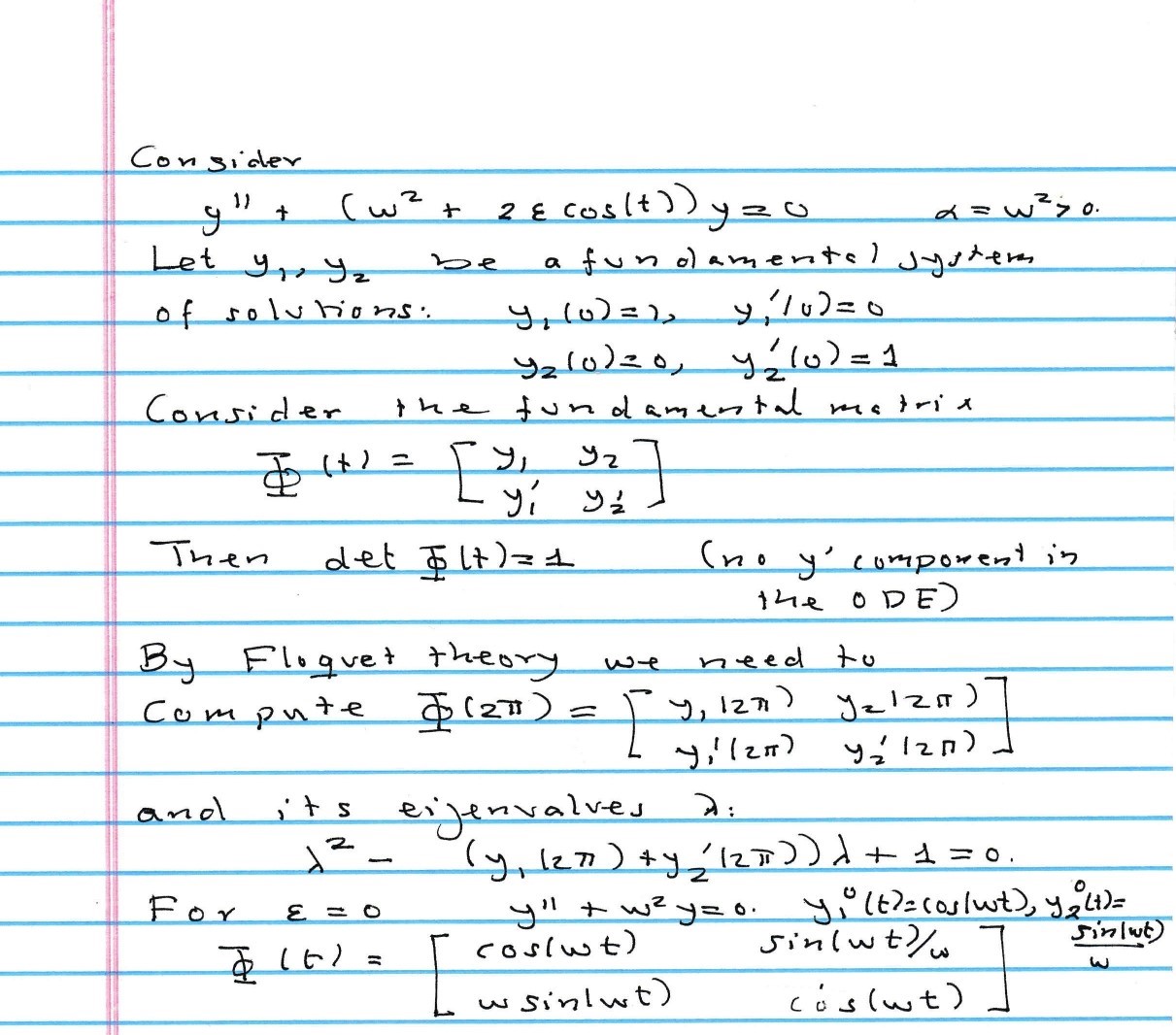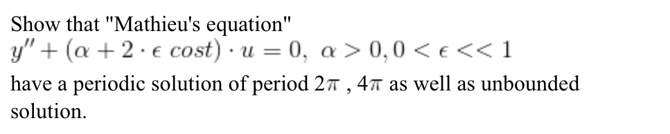 Show that "Mathieu's equation" y"+ (a+ -2.e cost).u...