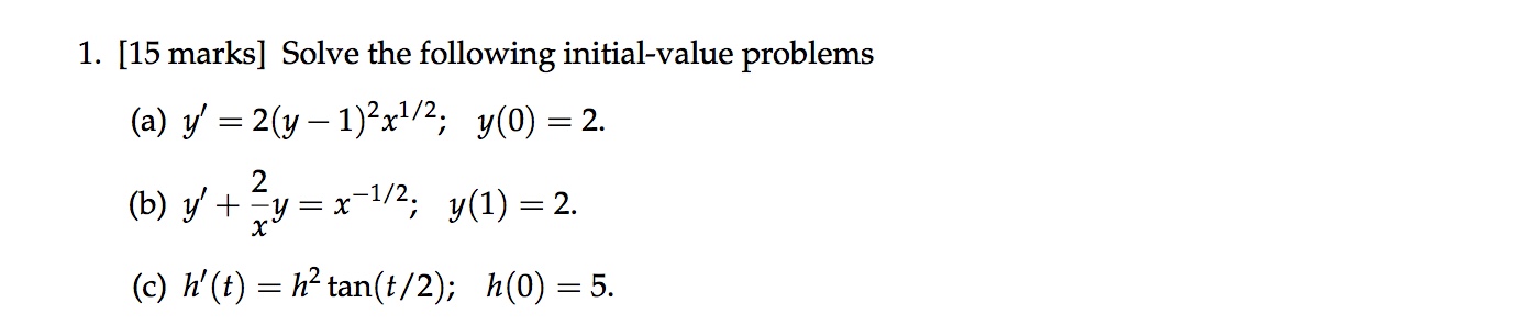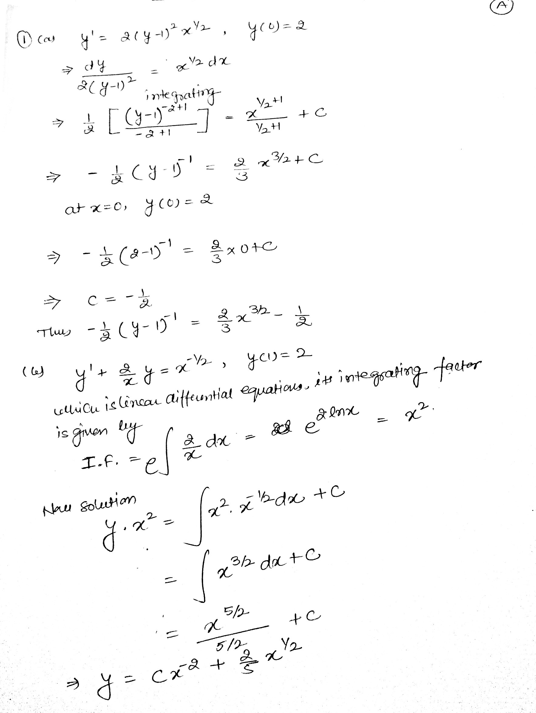1. [15 marks] Solve the following initial-value problems (a)y2(y-1...