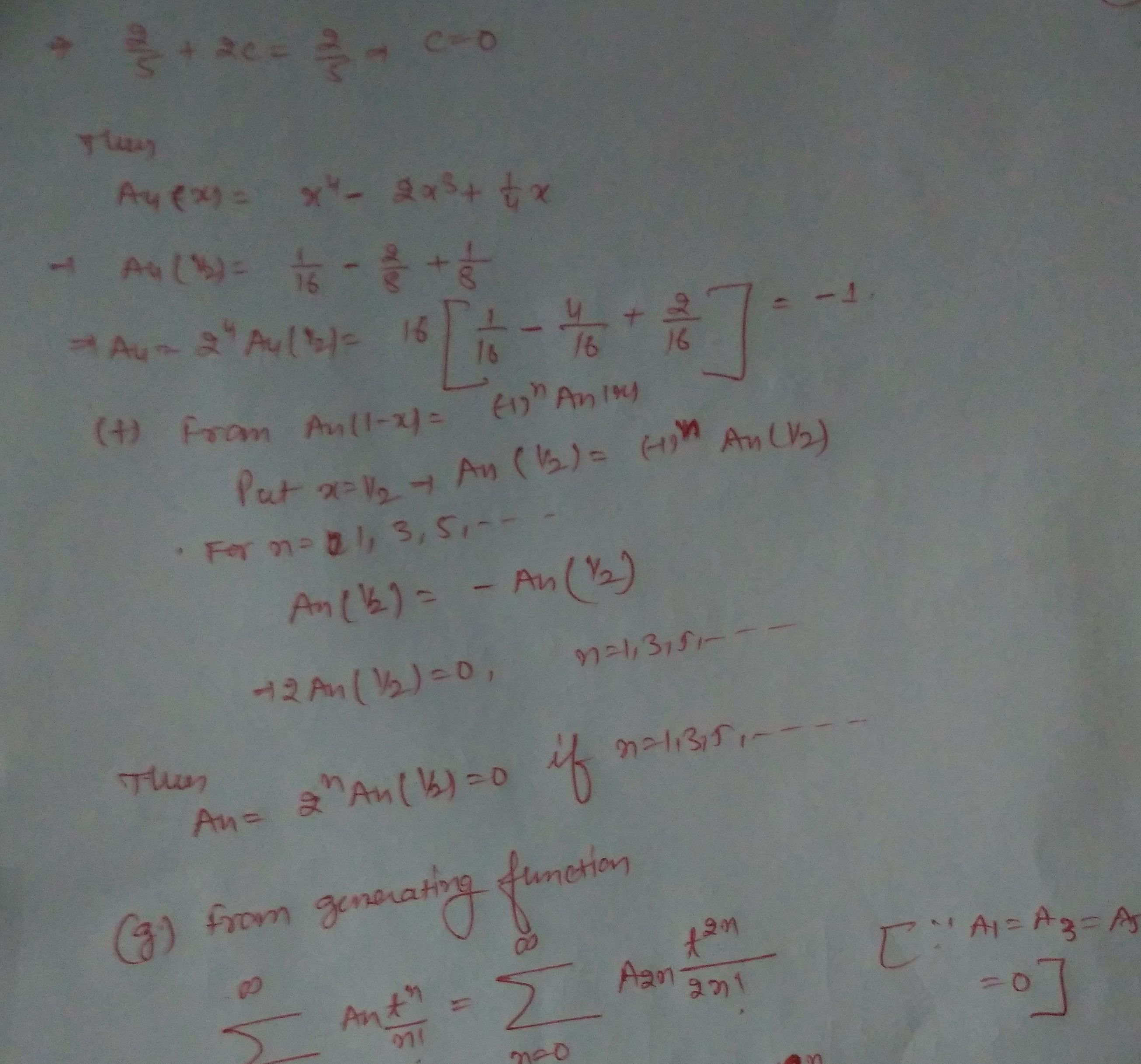 2. DefineAn(x),n=0,1,2..asinHwl (a) Use the generating function to...