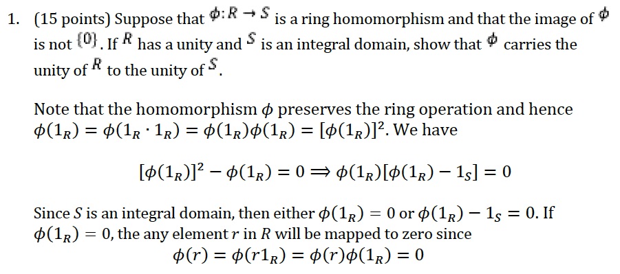 1. Suppose that :R S is a ring homomorphism and that the image of i...
