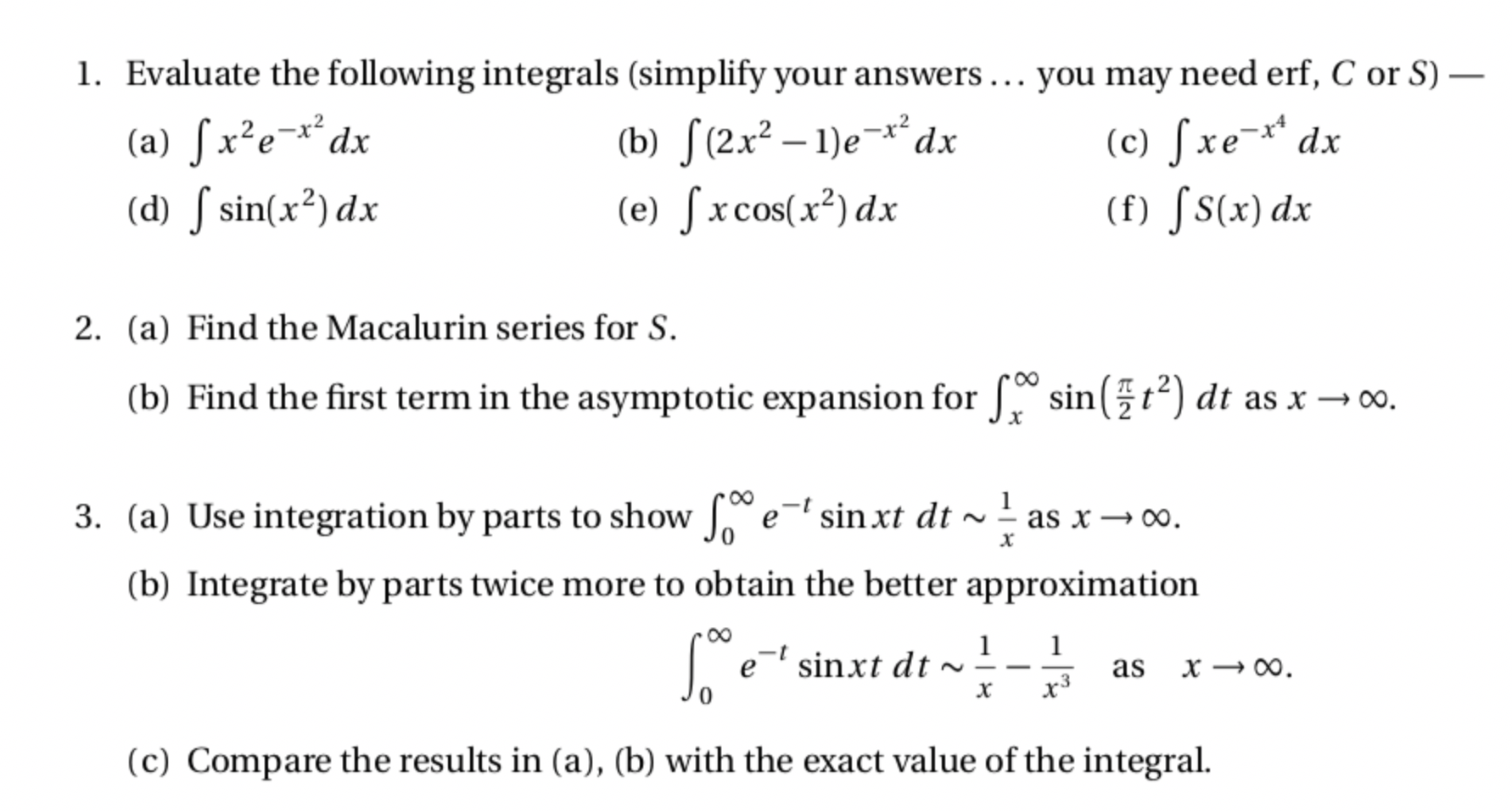 1. Evaluate the following integrals (simplify your answers you may...