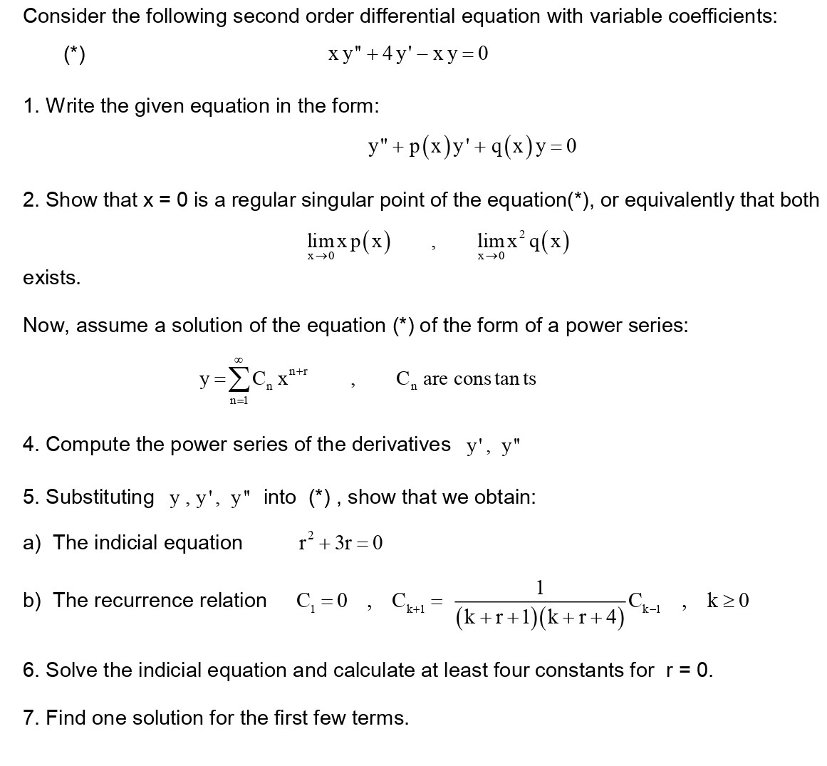 Consider the following second order differential equation with vari...