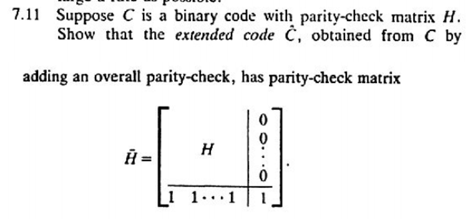 The - 7.11 Suppose C is a binary code with parity-check matrix H. ...