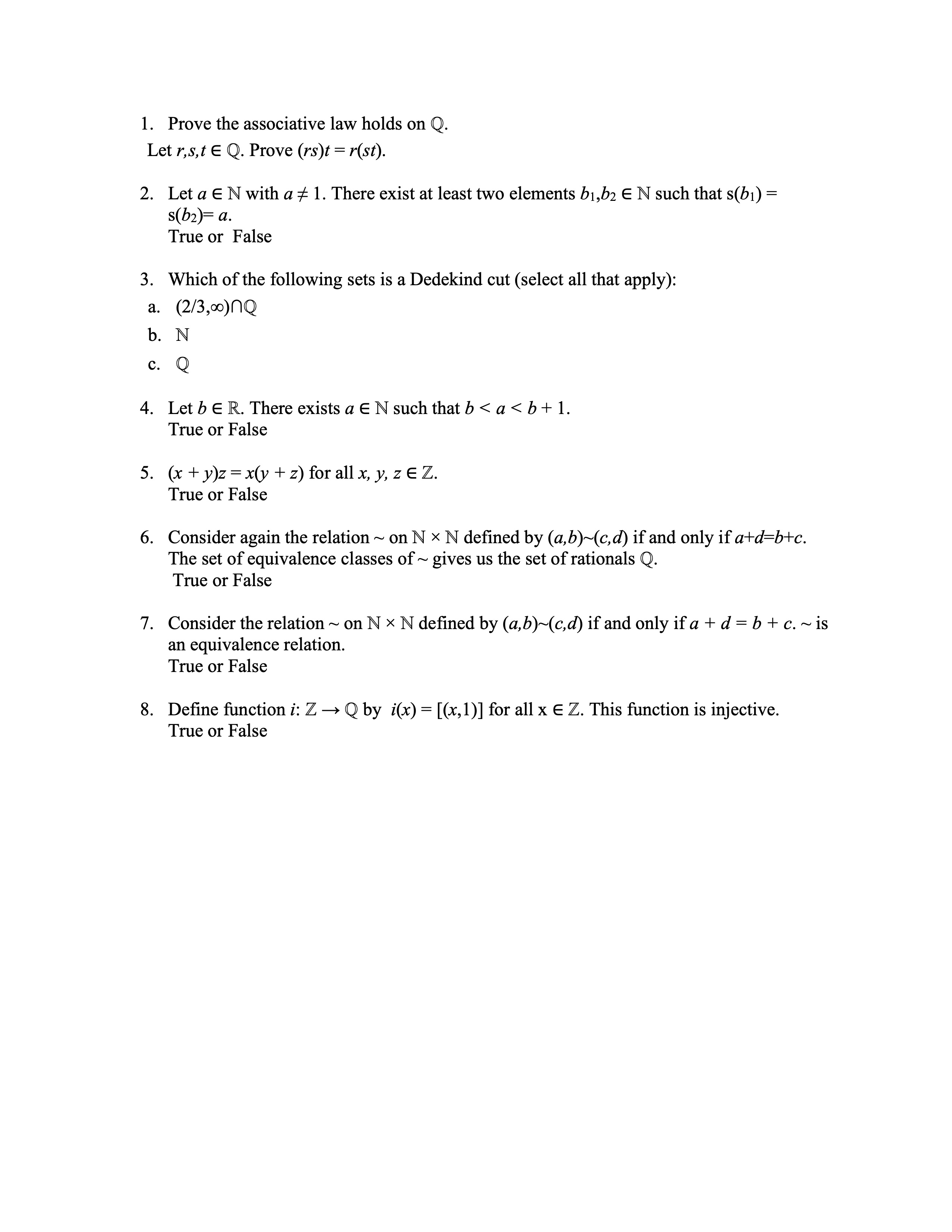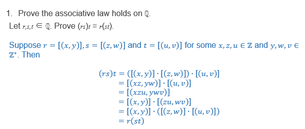 1. Prove the associative law holds on Q. Letr,s,t Q. Prove (rs)/ -...