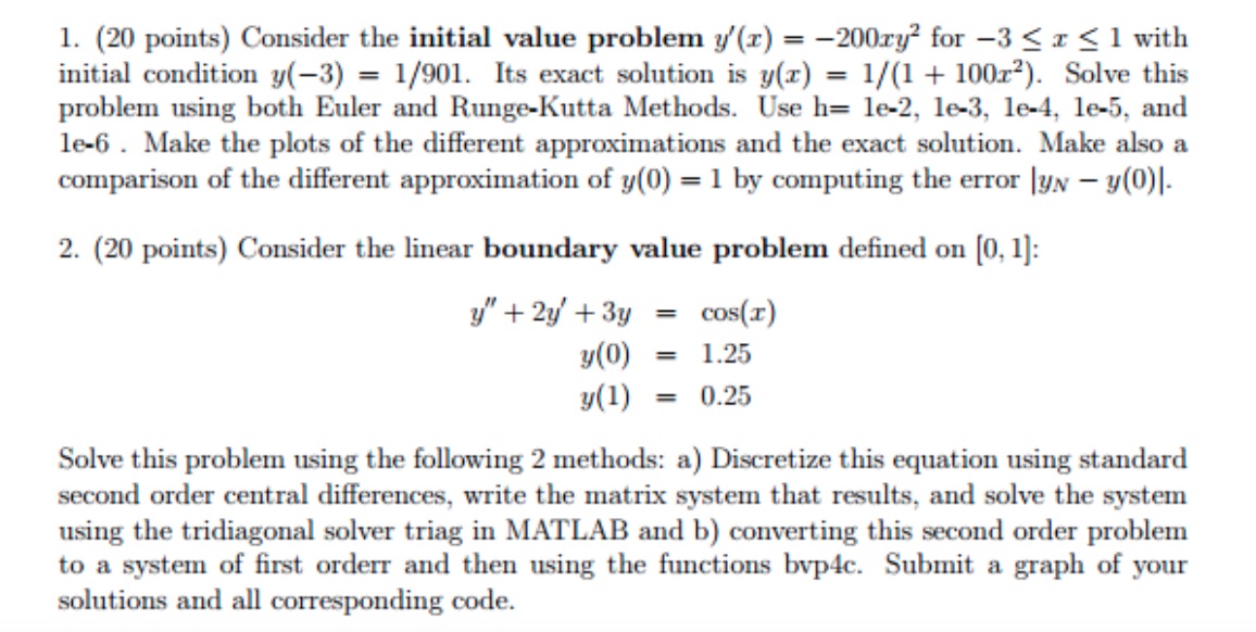 1. (20 points) Consider the initial value problem y'(x) = -200xy2 f...