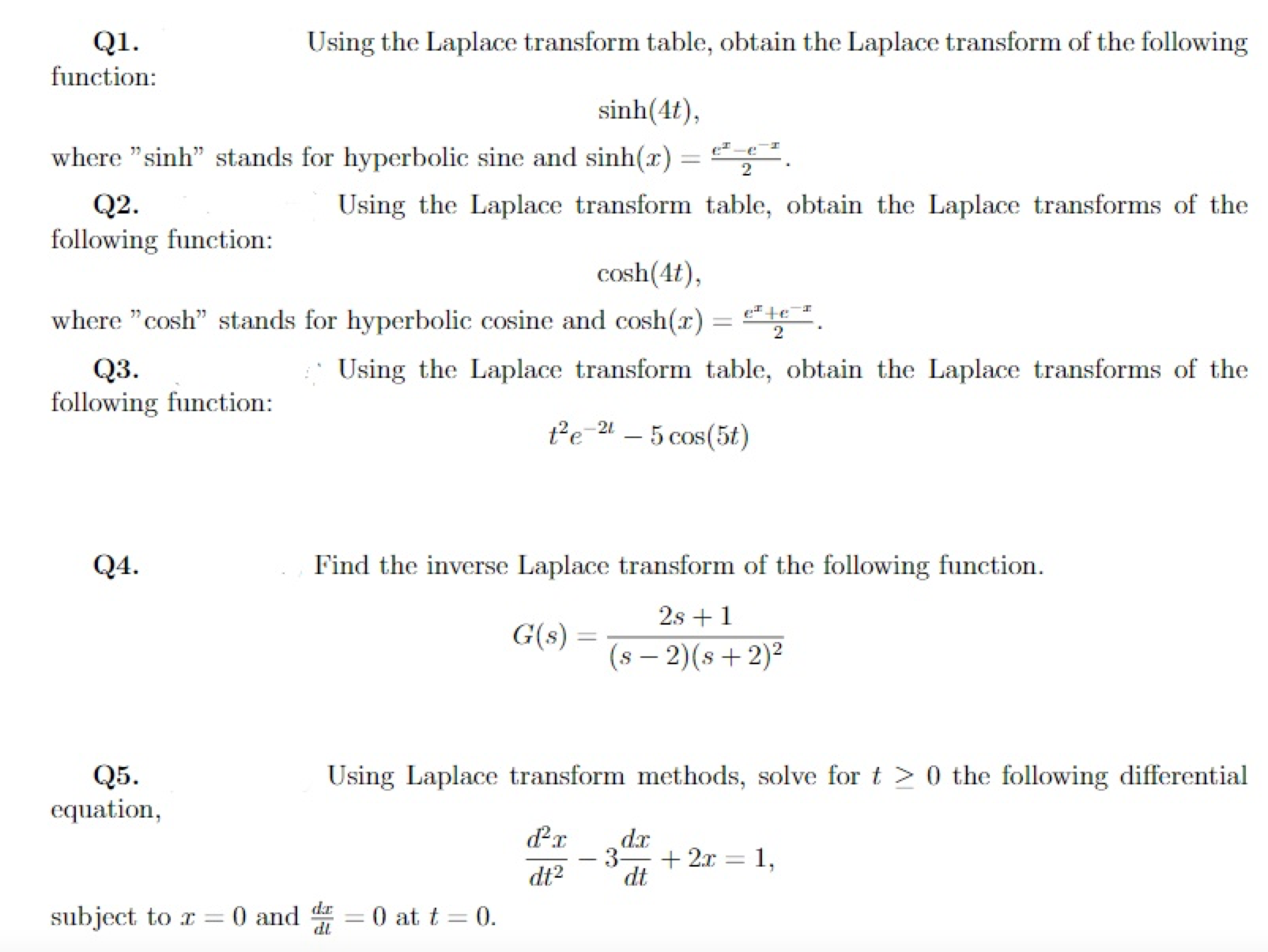 Q1. Using the Laplace transform table, obtain the Laplace transfor...