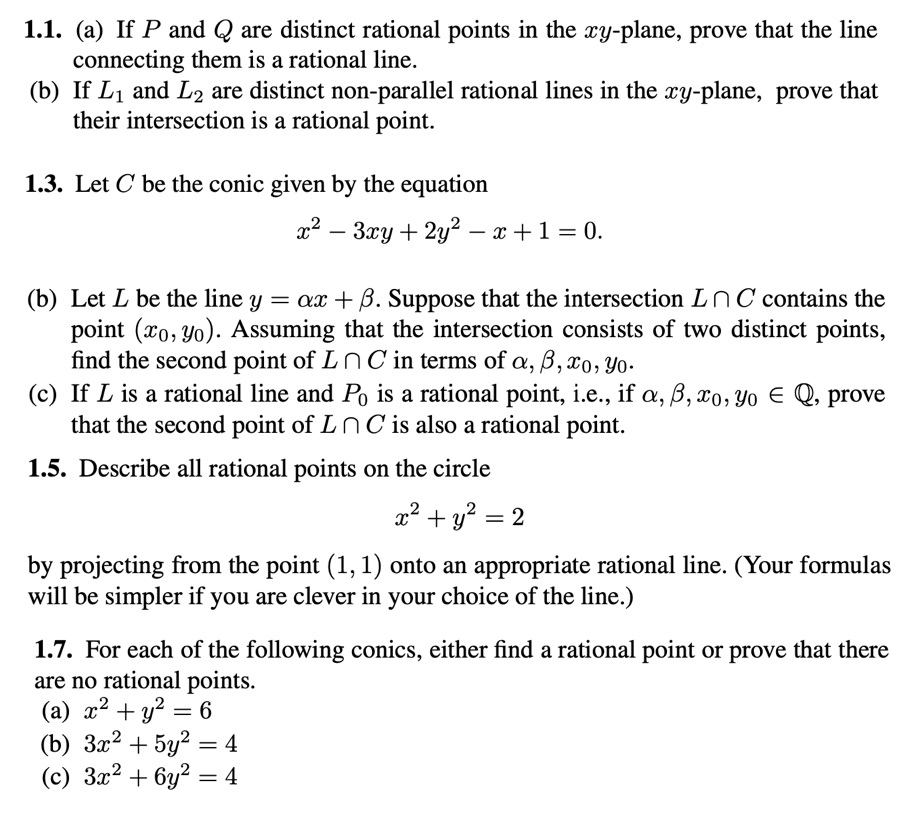 1.1. (a) If P and Q are distinct rational points in the xy-plane, p...