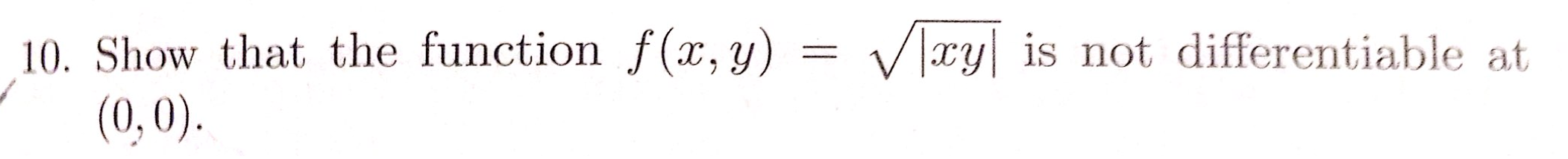 10. Show that the function f(x,y) = V xy | is not differentiable at...