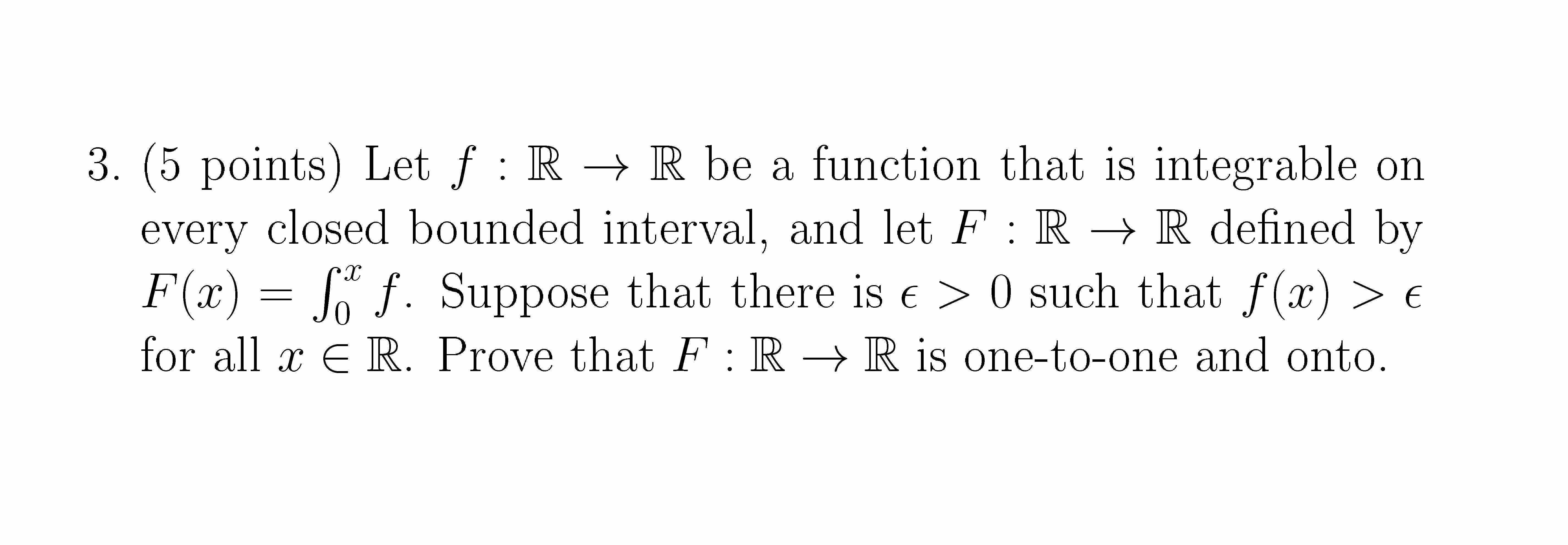 3. (5 points) Let f R - R be a function that is integrable on ever...