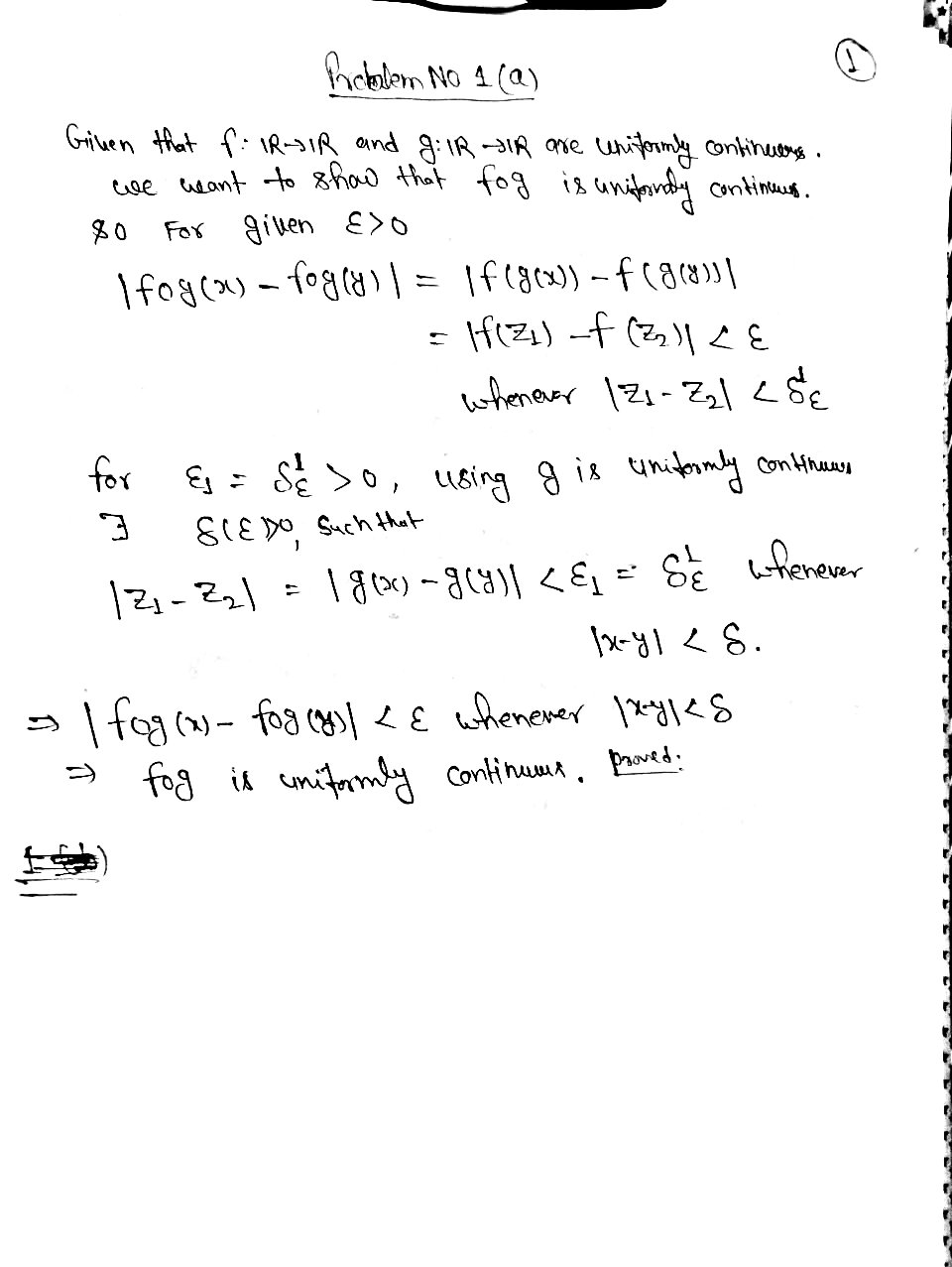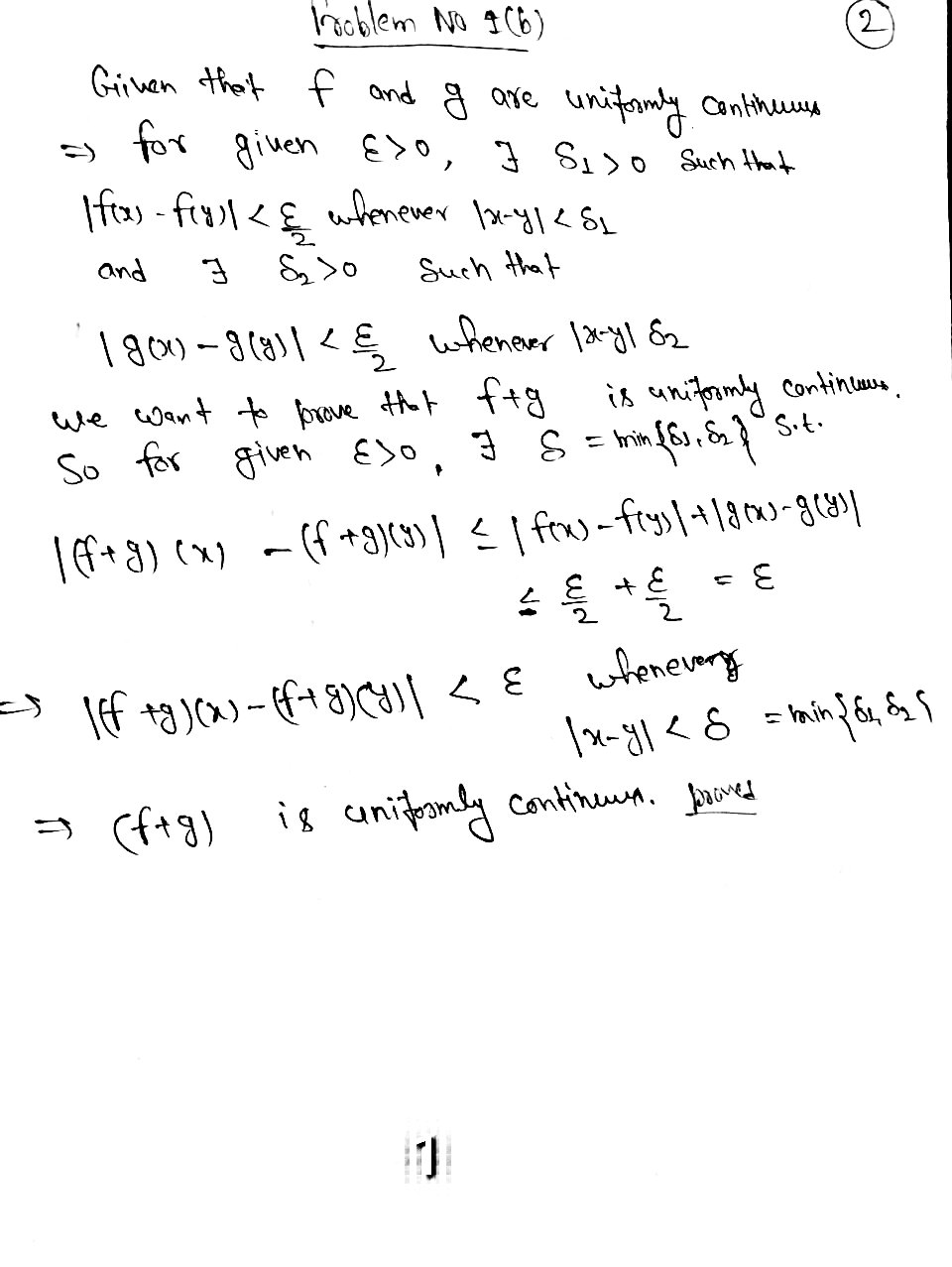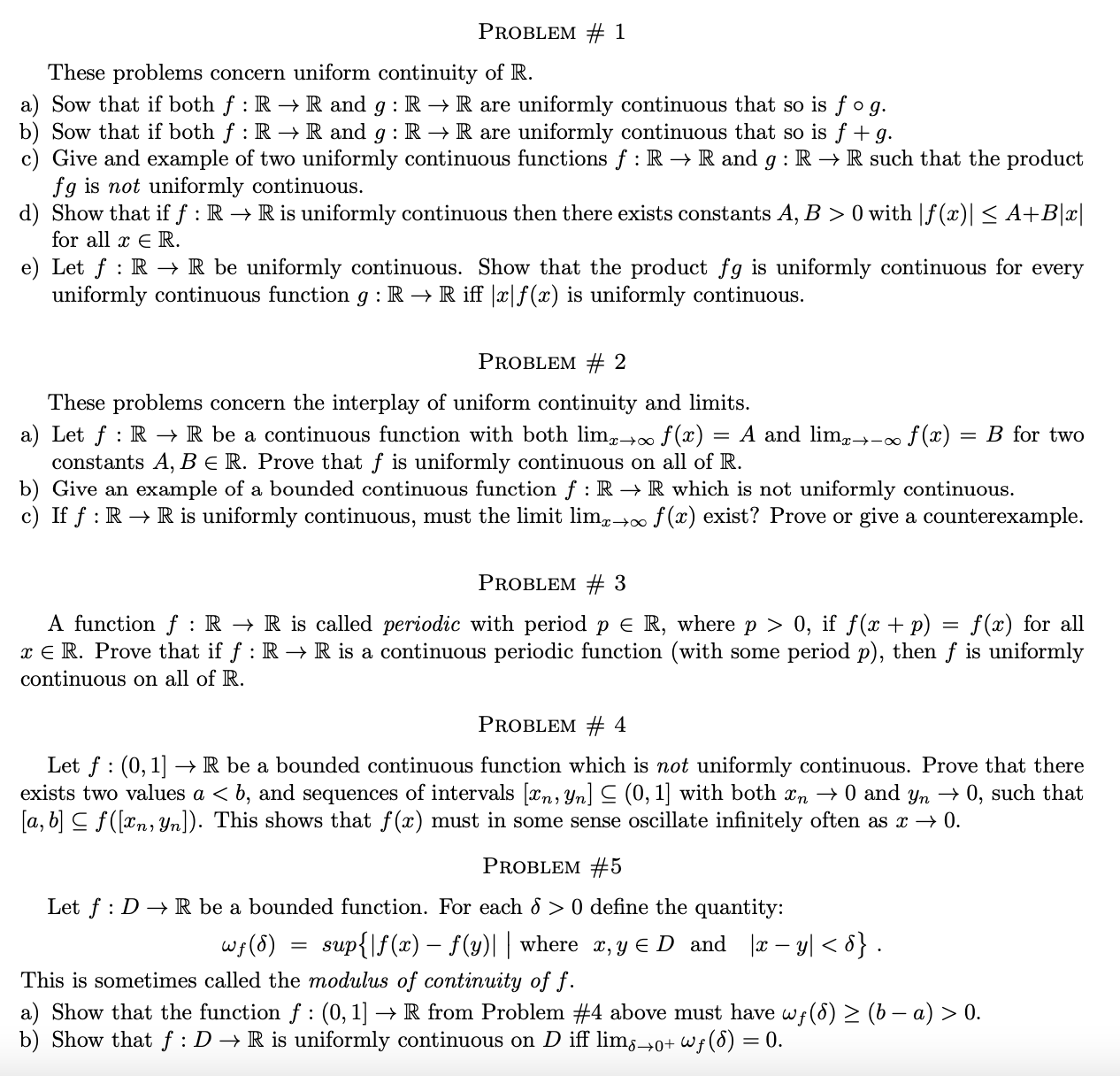 PROBLEM # 1 These problems concern uniform continuity of R. a) So...