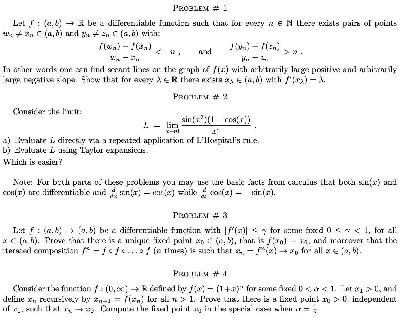 PROBLEM # 1 Let f : (a,b) R be a differentiable function such that...