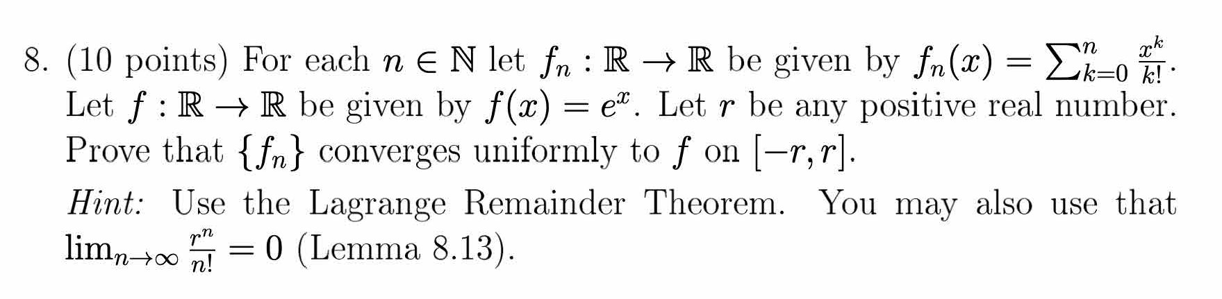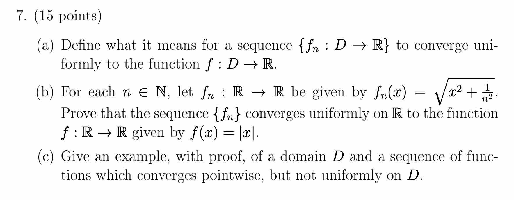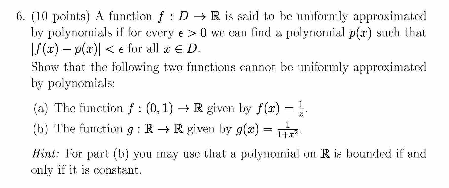6. (10 points) A function f D R is said to be uniformly approxi...