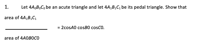 1. Let 4AoBoCo be an acute triangle and let 4A1B1C1 be its pedal t...
