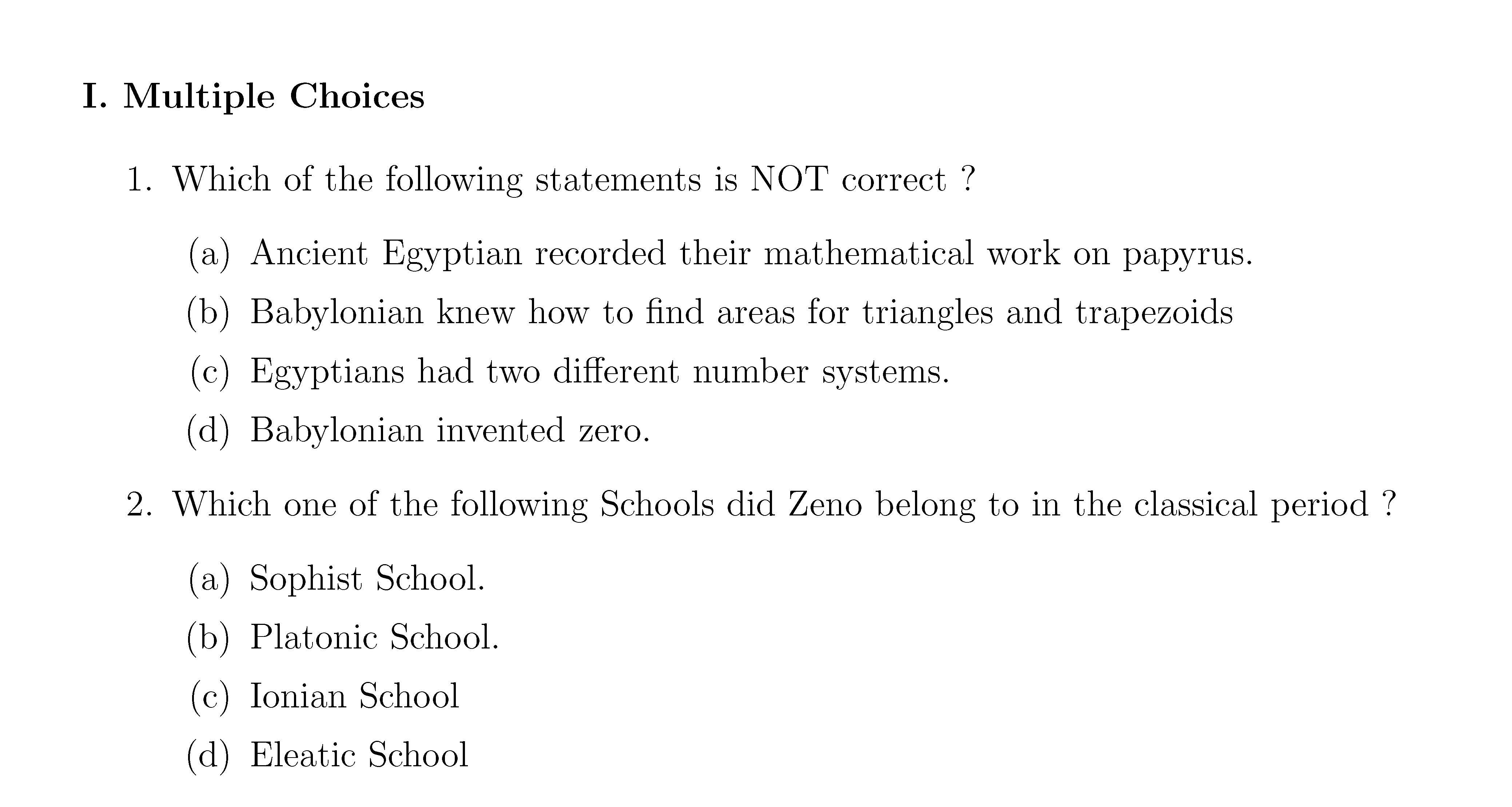 I. Multiple Choices based on the lecture notes 1. Which of the fol...