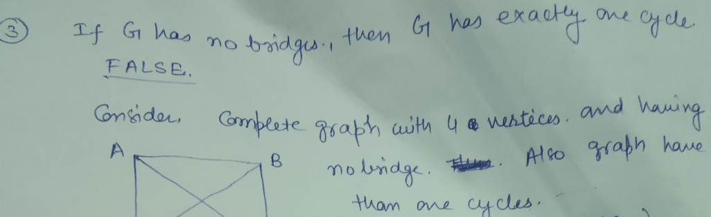 3. Prove/Disprove: If G has no bridges, then G has exactly one cycl...