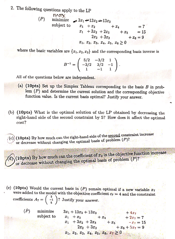 2. The following questions apply to the LP max (P) minimize subj...