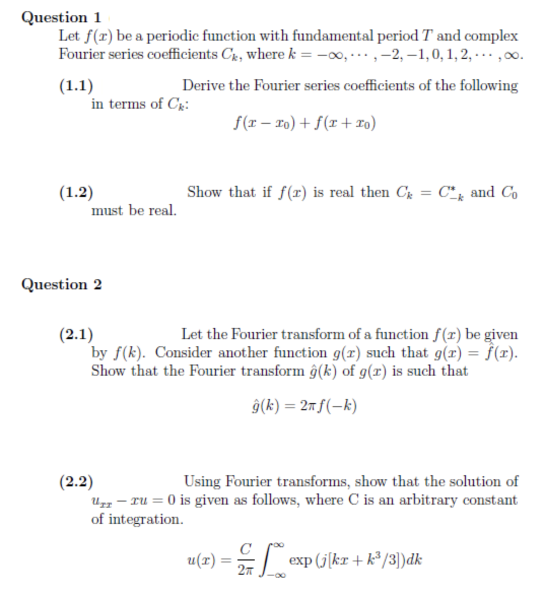 Question 1 Let f(r) be a periodic function with fundamental period...