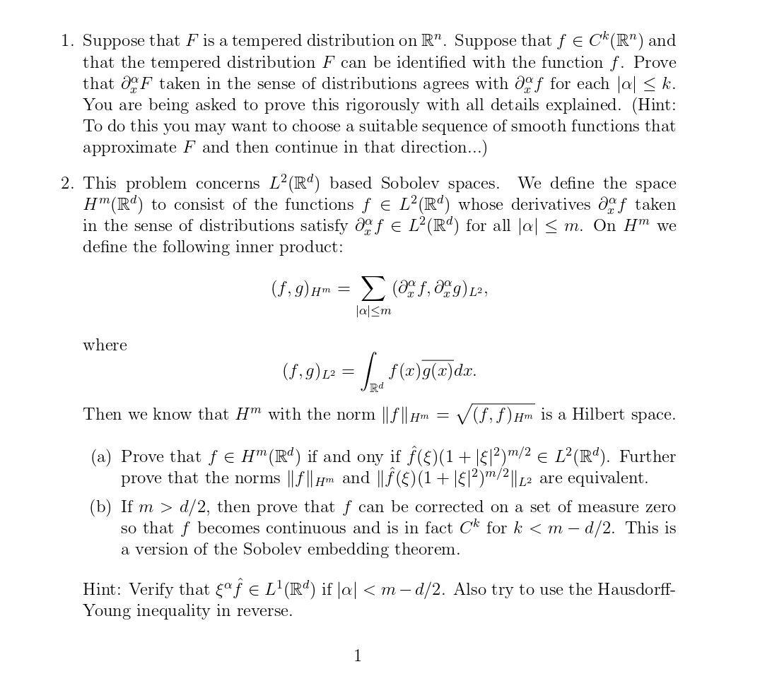 1. Suppose that F is a tempered distribution on Rn. Suppose that f...