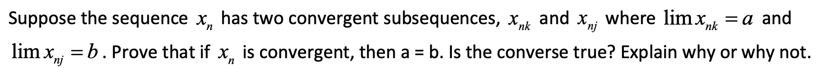 Suppose the sequence Xn has two convergent subsequences, xnk and Xn...
