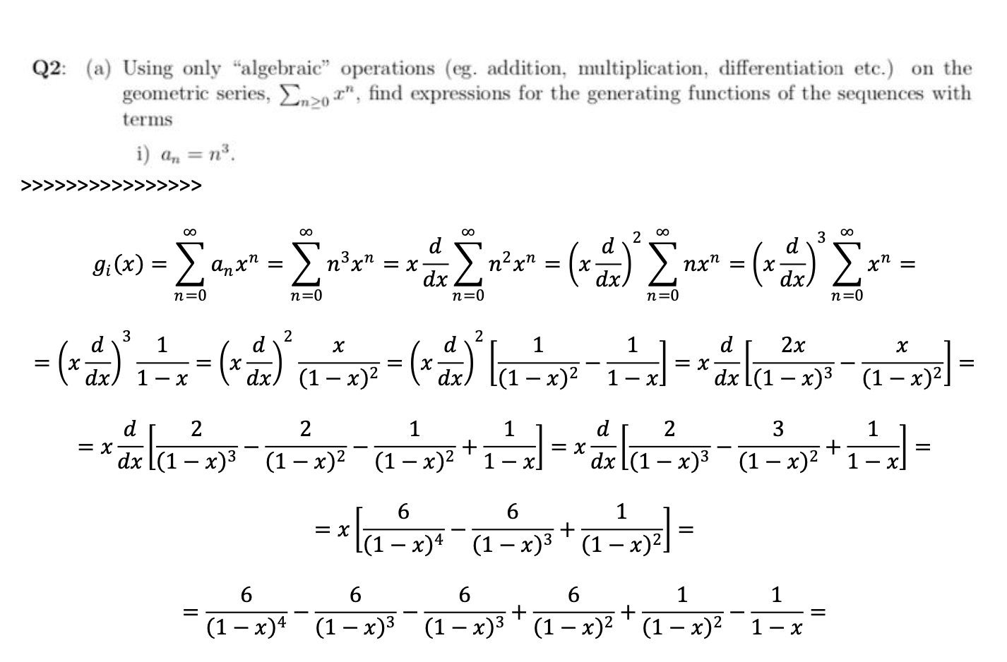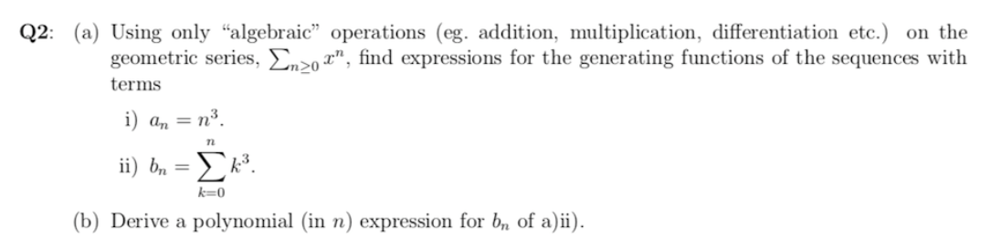 Q2: (a) Using only "algebraic" operations (eg. addition, ...
