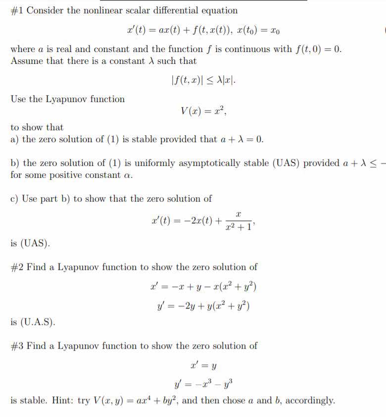 #1 Consider the nonlinear scalar differential equation x'(t) =ax(t...