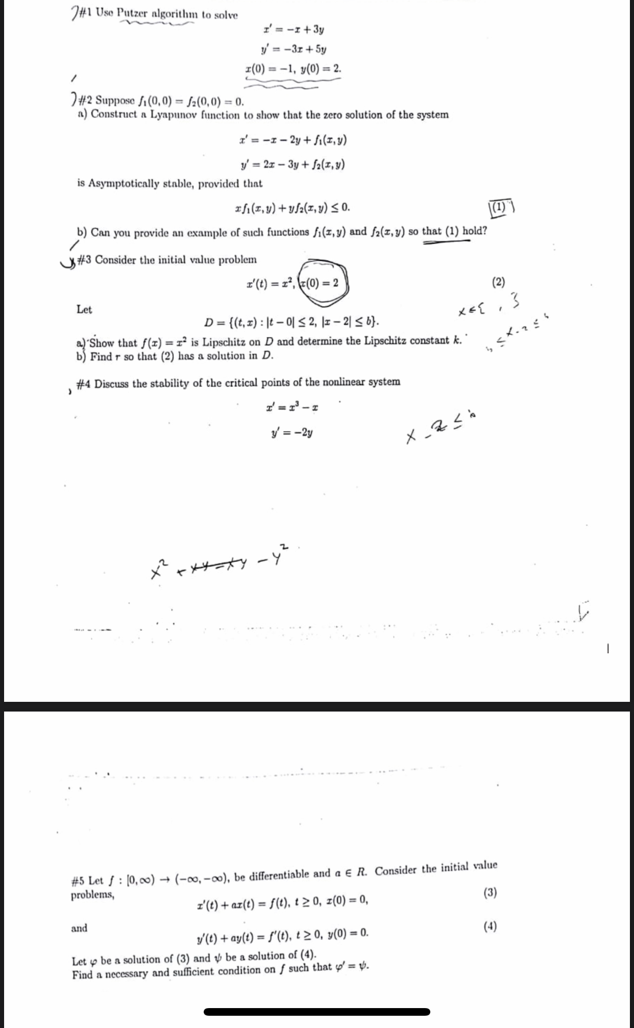 7#1 Use Putzer algorithm to solve r'=-r+3y - / ) #2 Suppose 1,(0...