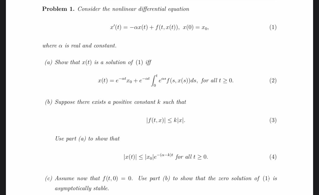 Problem 1. Consider the nonlinear differential equation :'(t) = - ...