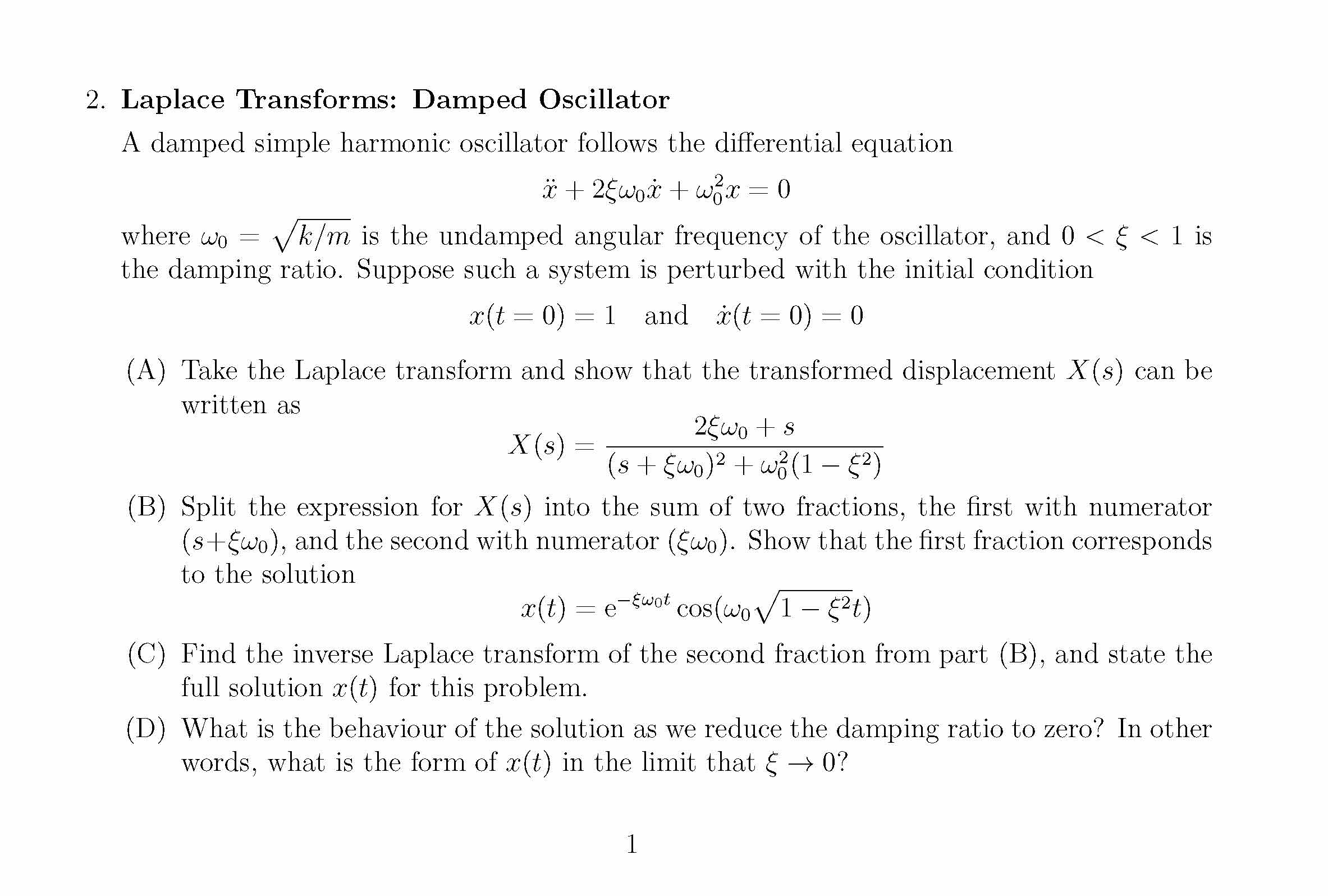 2. Laplace Transforms: Damped Oscillator A damped simple harmonic ...
