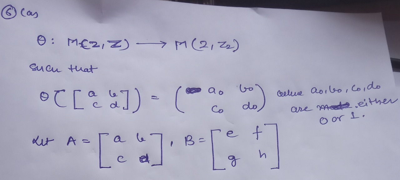 6. Let A: M I(2,Z) M (2,Z2) be the function that reduces the entr...