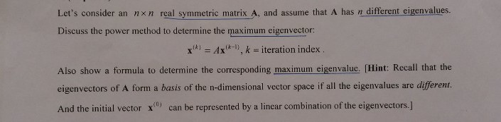 Let's consider an nxn real symmetric matrix A, and assume that A ha...
