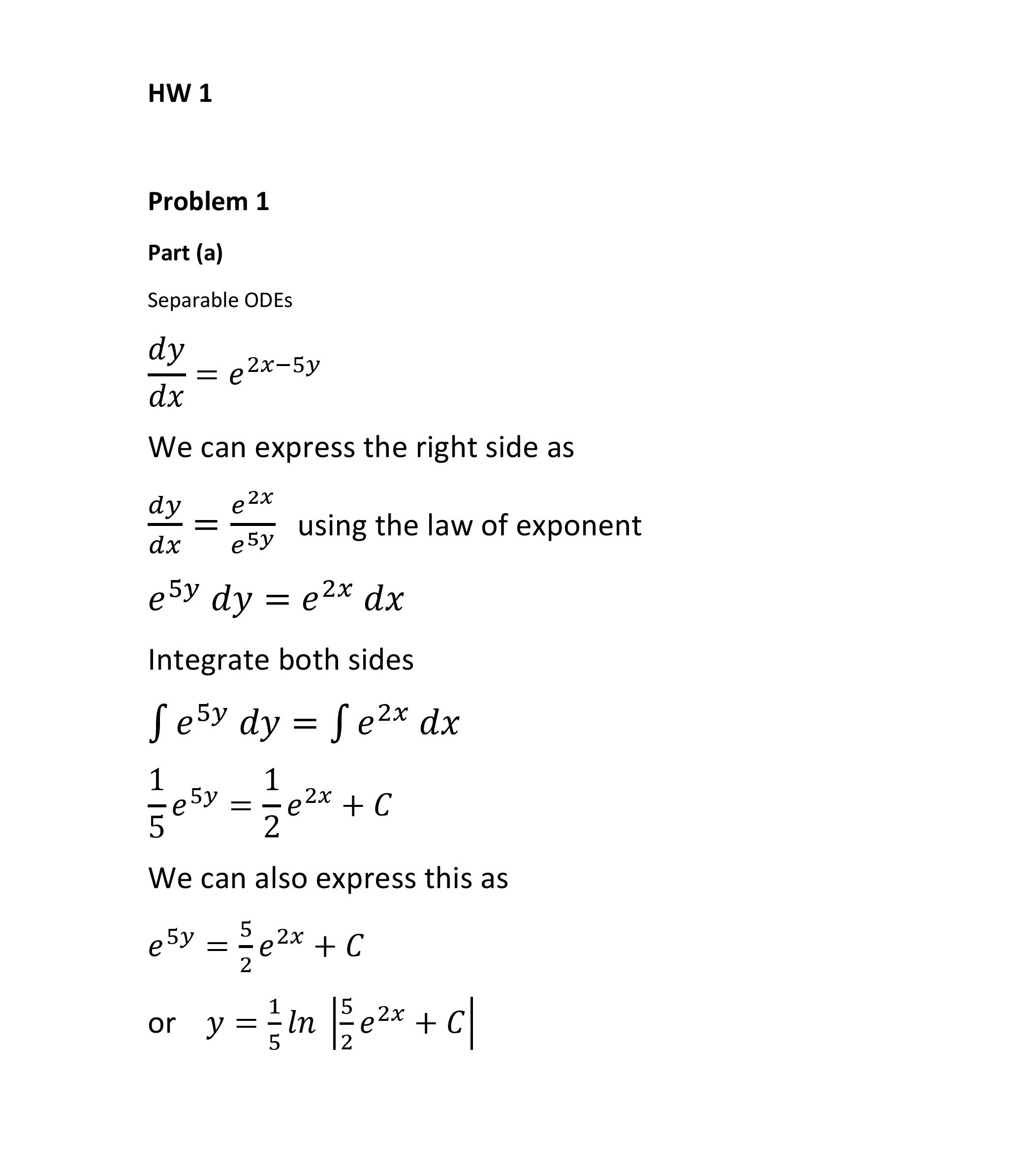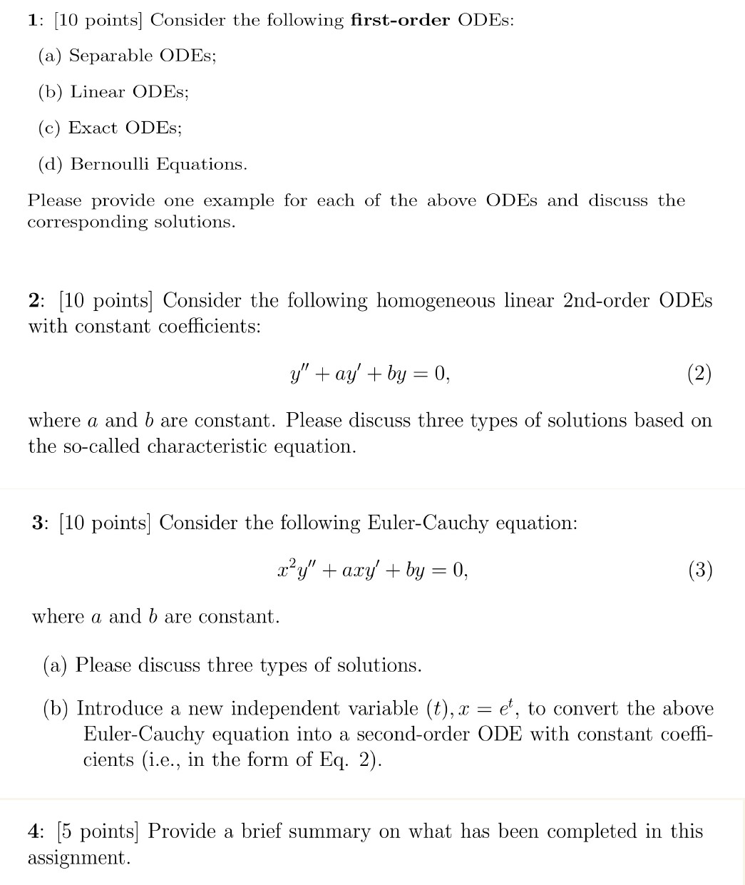 1: [10 points] Consider the following first-order ODEs: (a) Separa...