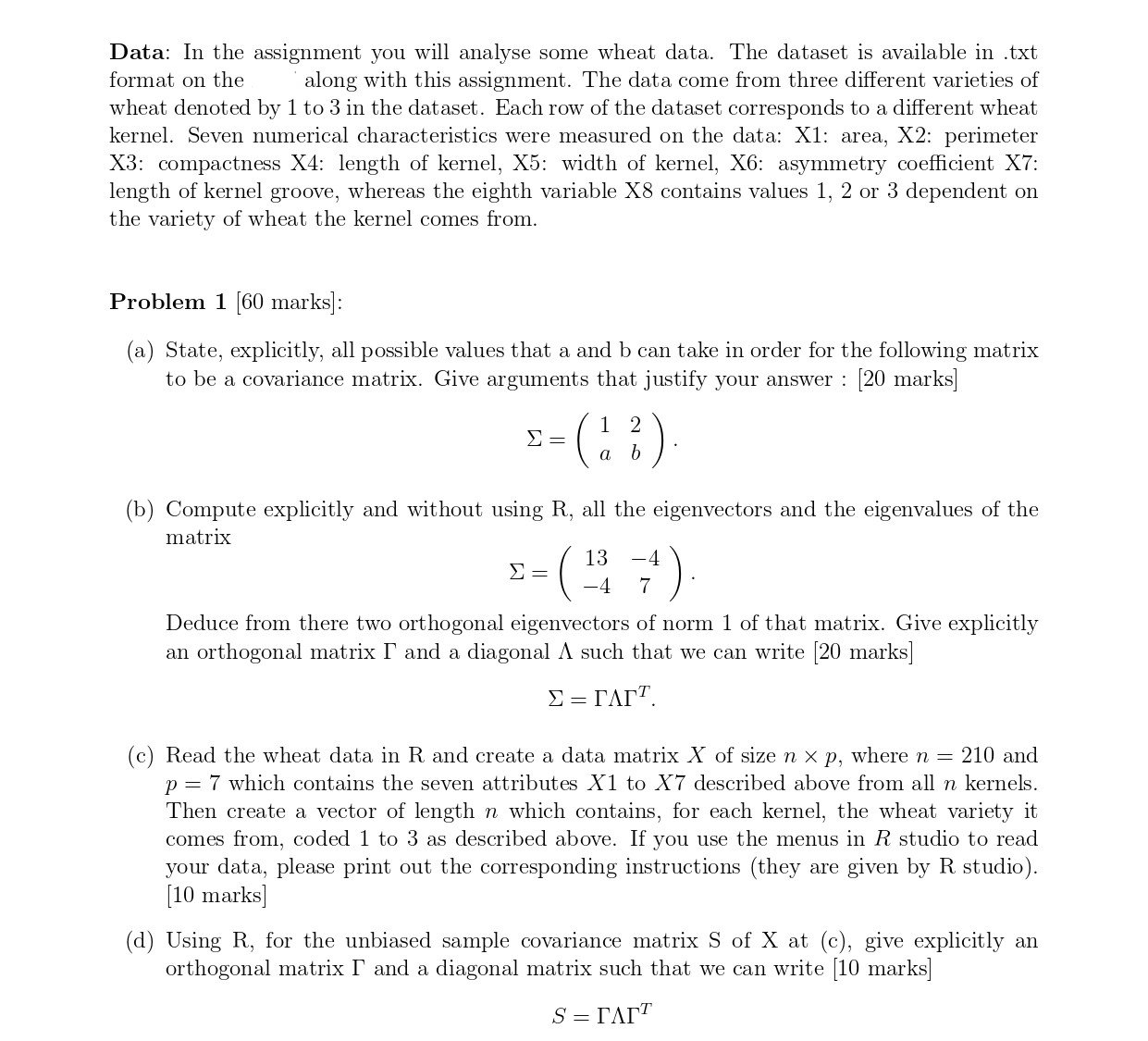 Data: In the assignment you will analyse some wheat data. The datas...