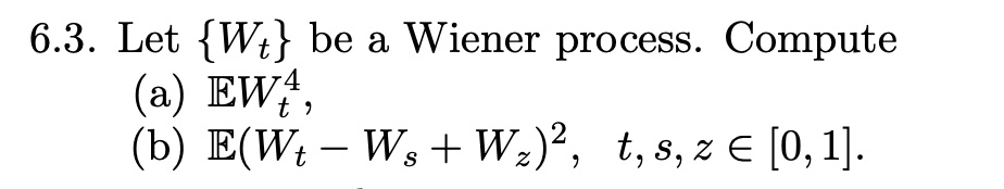 6.3. Let {Wt} be a Wiener process. Compute (a) EWt (b) E(Wt - Ws ...