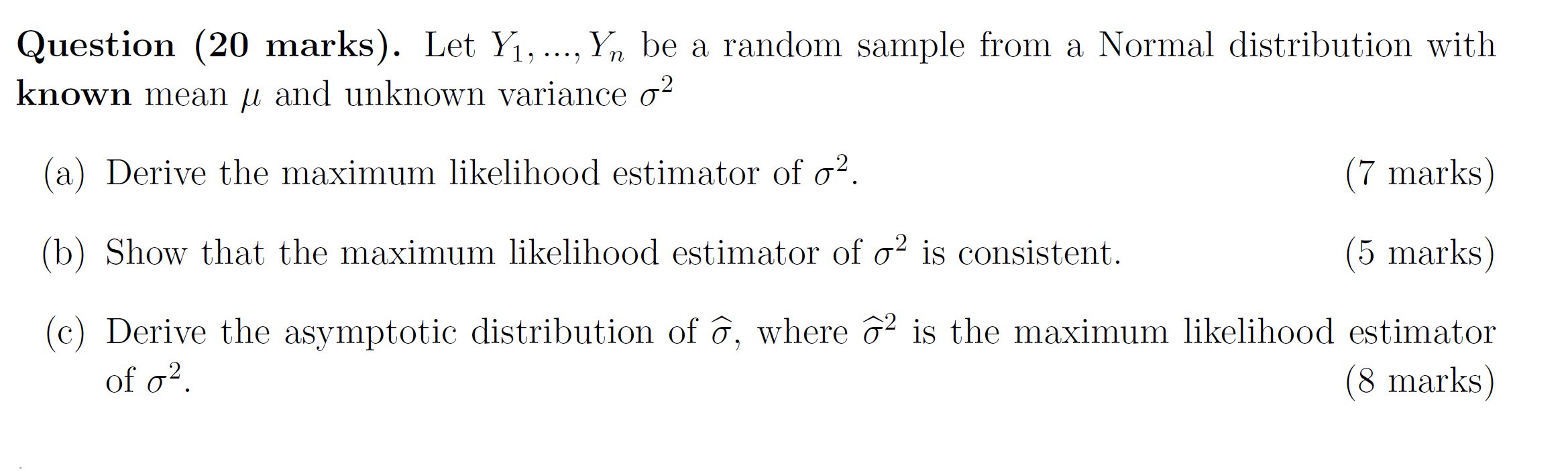 Question (20 marks). Let Y1, ..., Yn be a random sample from a Norm...
